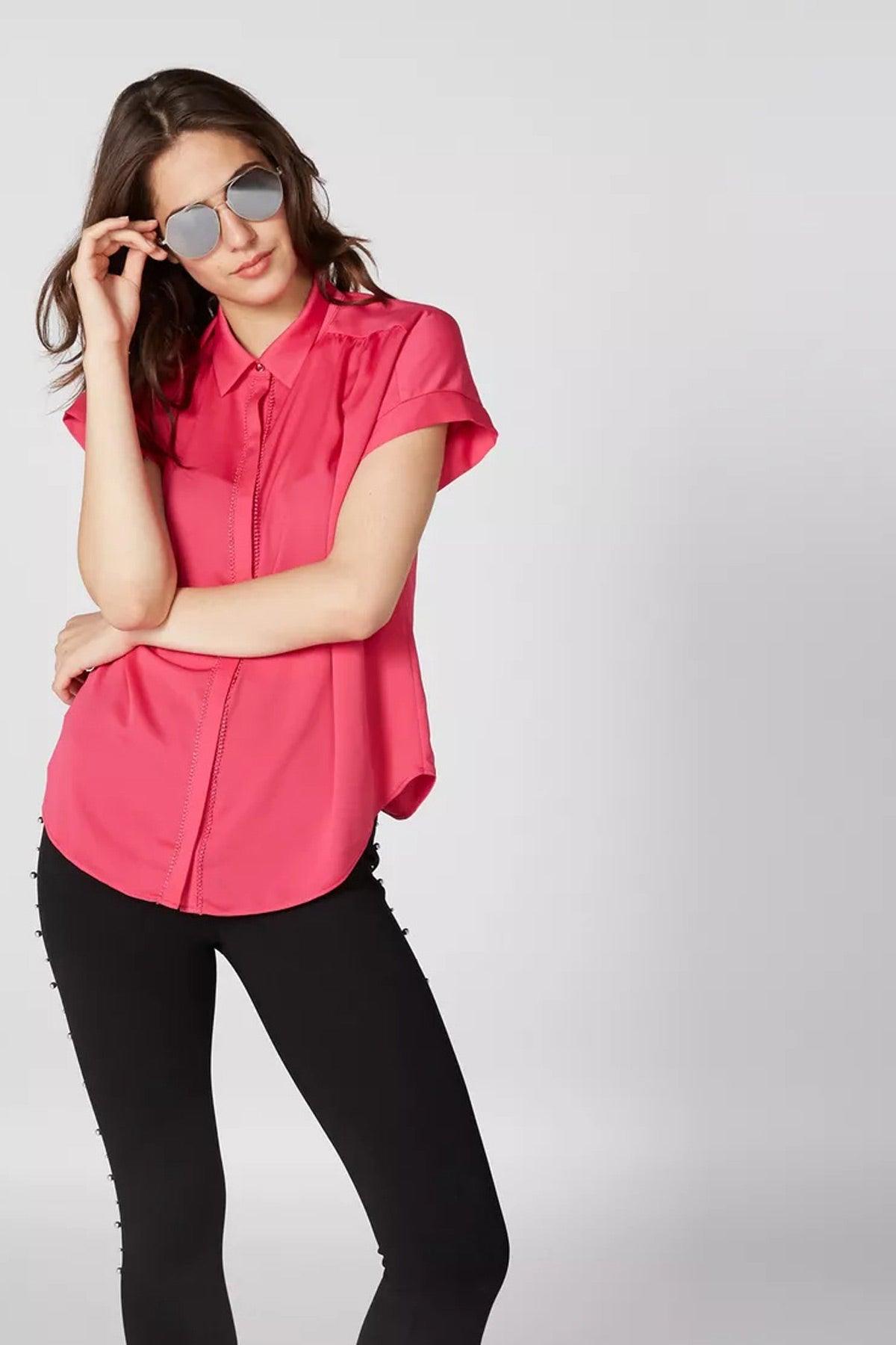 Pom Pom Detail Shirt With Short Sleeves And Complete Placket