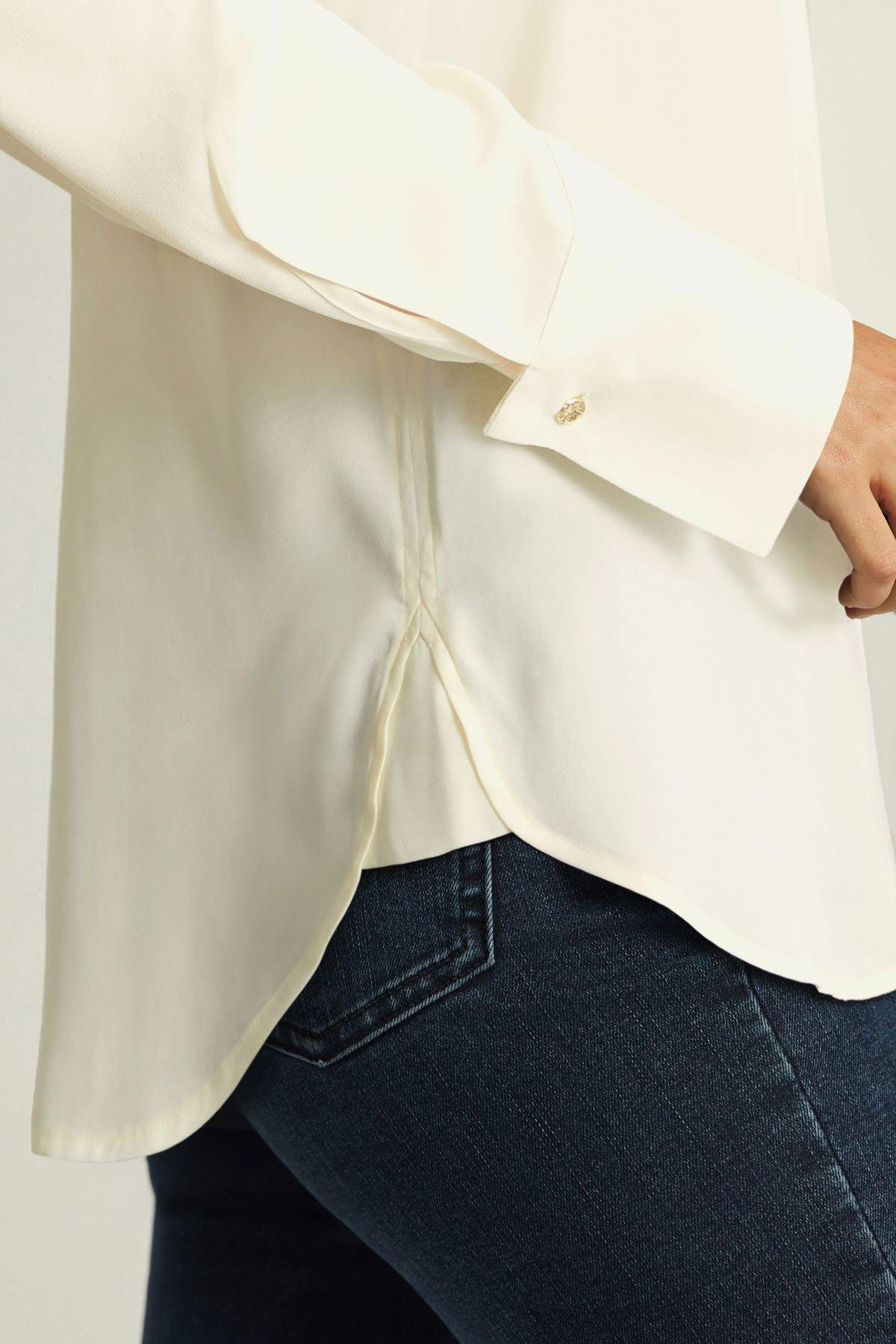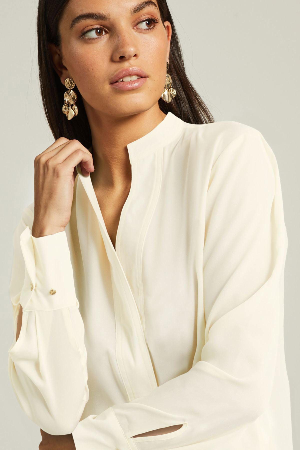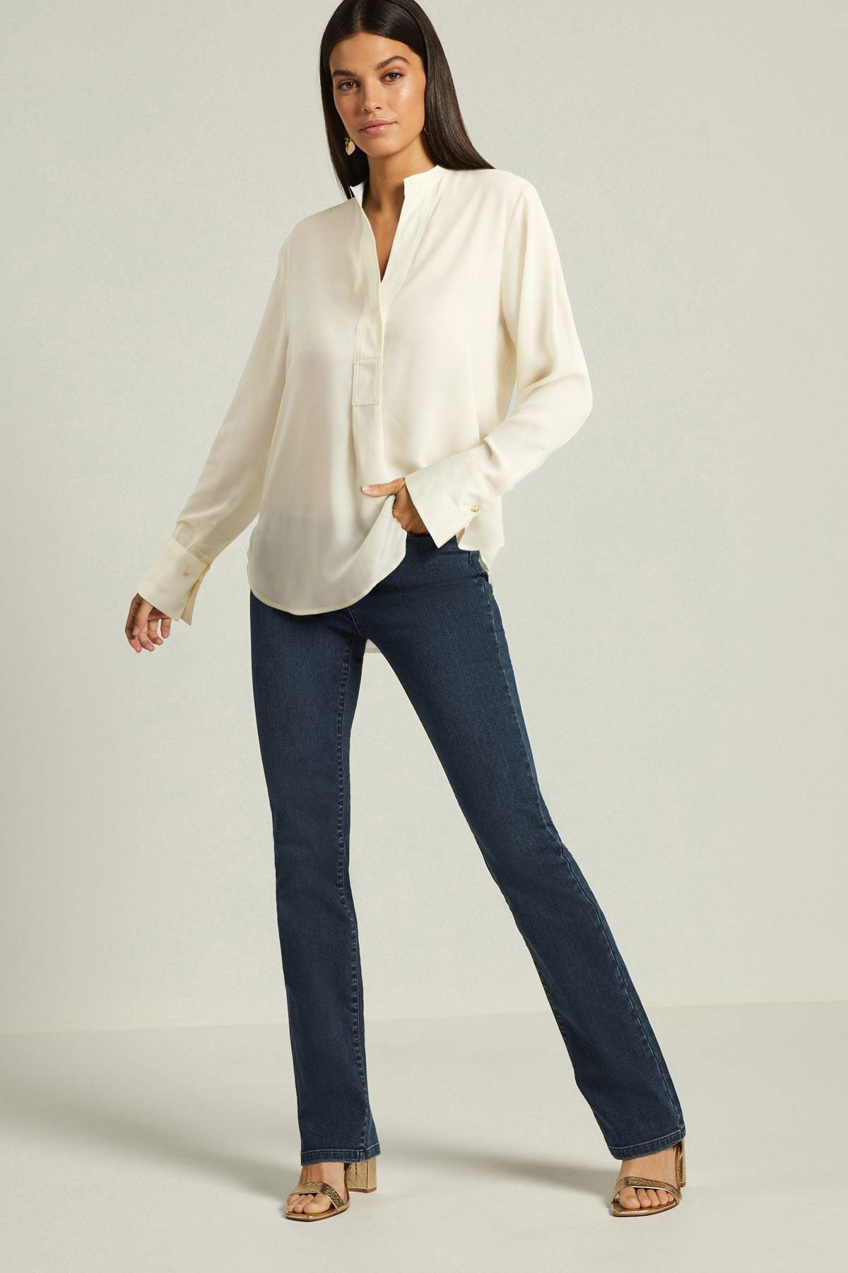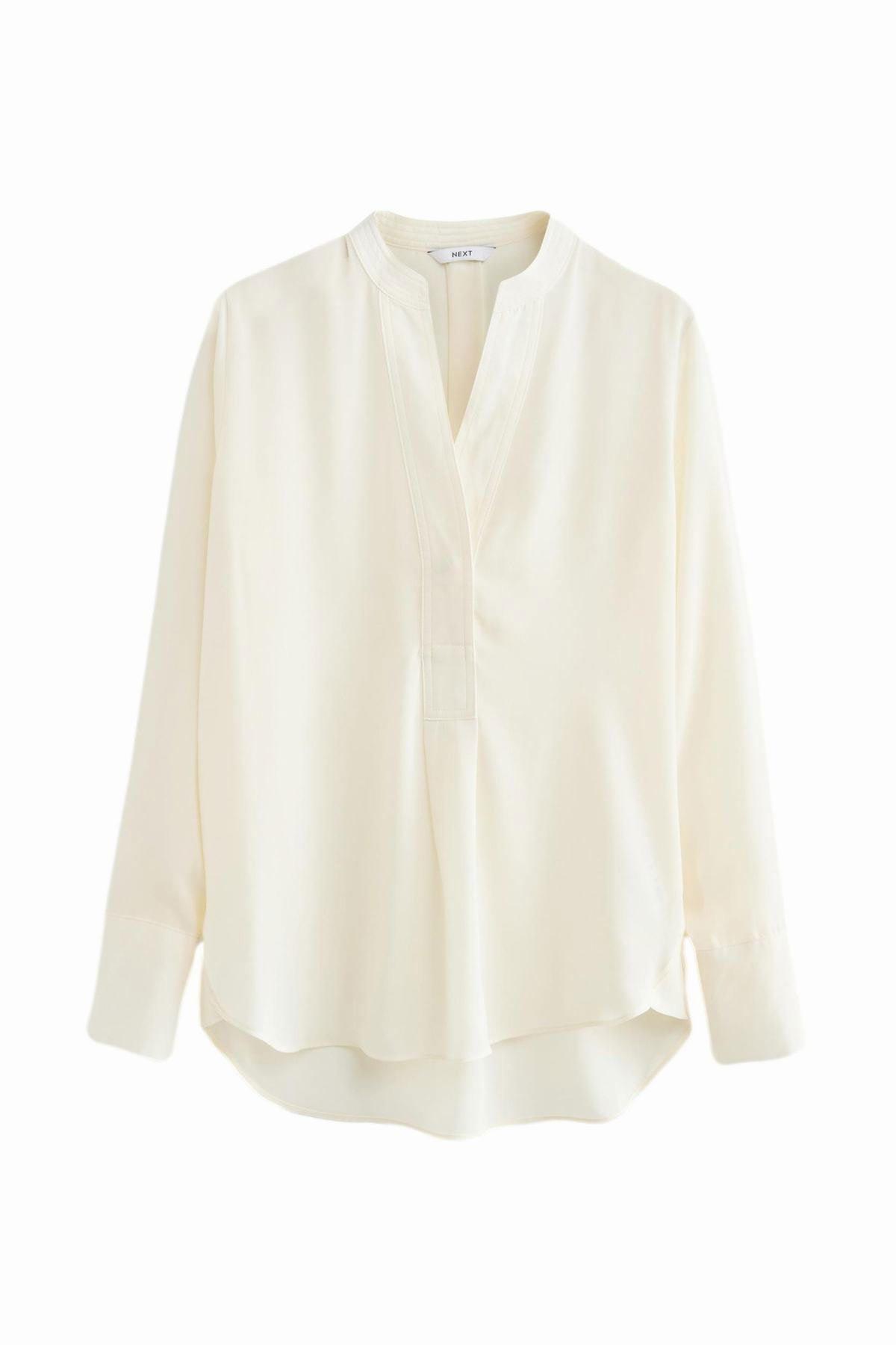Long Sleeve Overhead V Neck Relaxed Fit Blouse