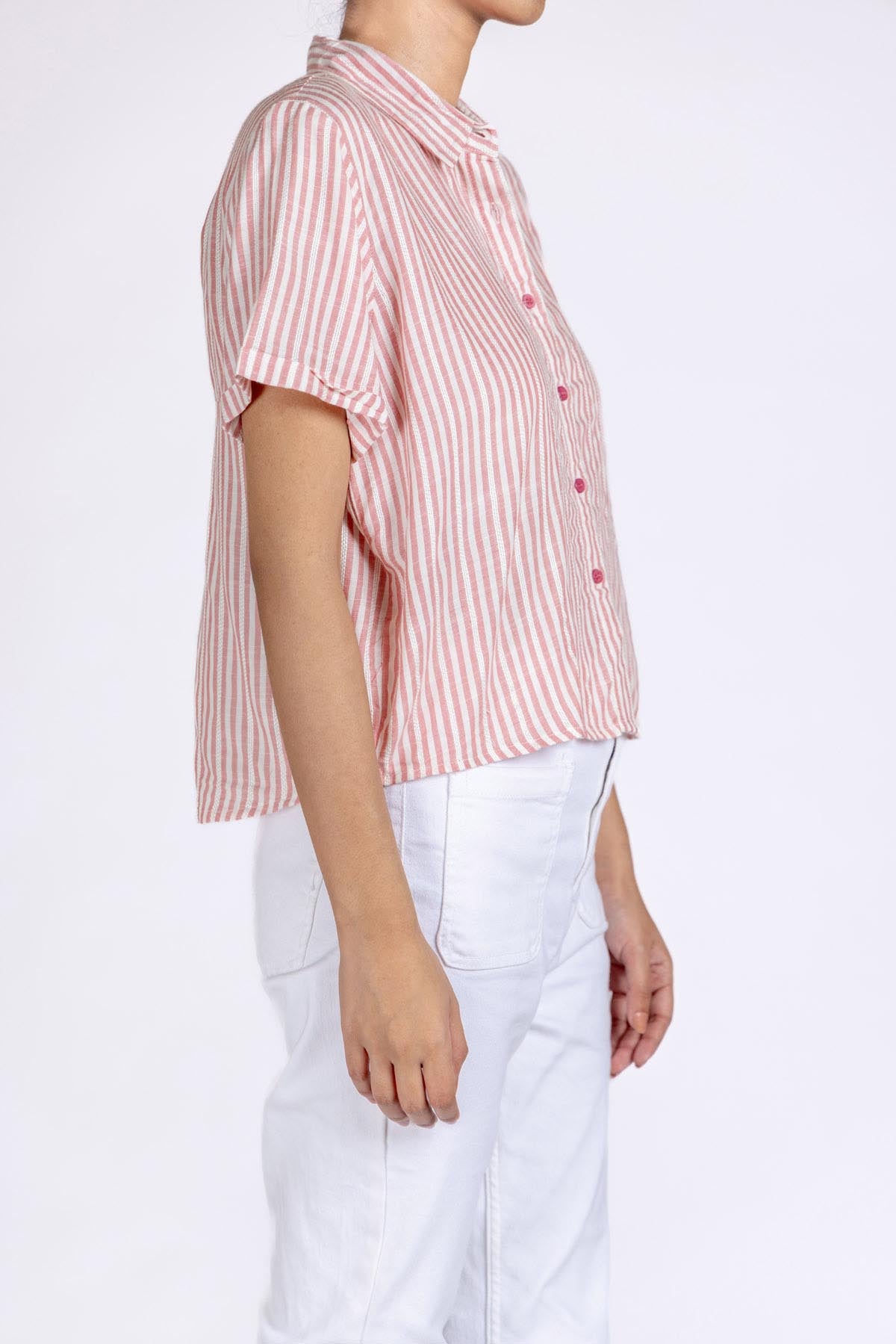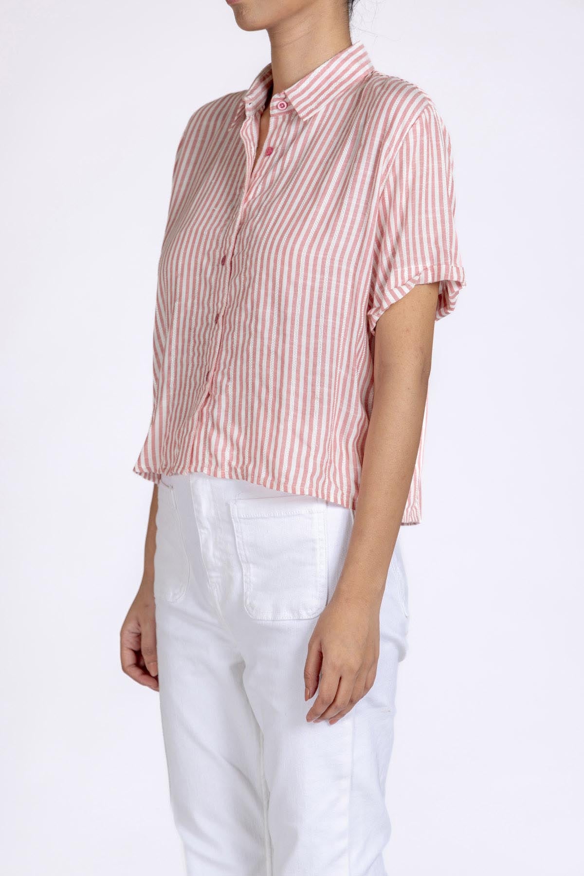 100% Viscose. Cropped button down with regular collar. Featuring short sleeves with folded hem. Modelà ¢Ã¢ €š ¬Ã¢ €ž ¢s height: 5'7ft, Modelà ¢Ã¢ €š ¬Ã¢ €ž ¢s size: Small.