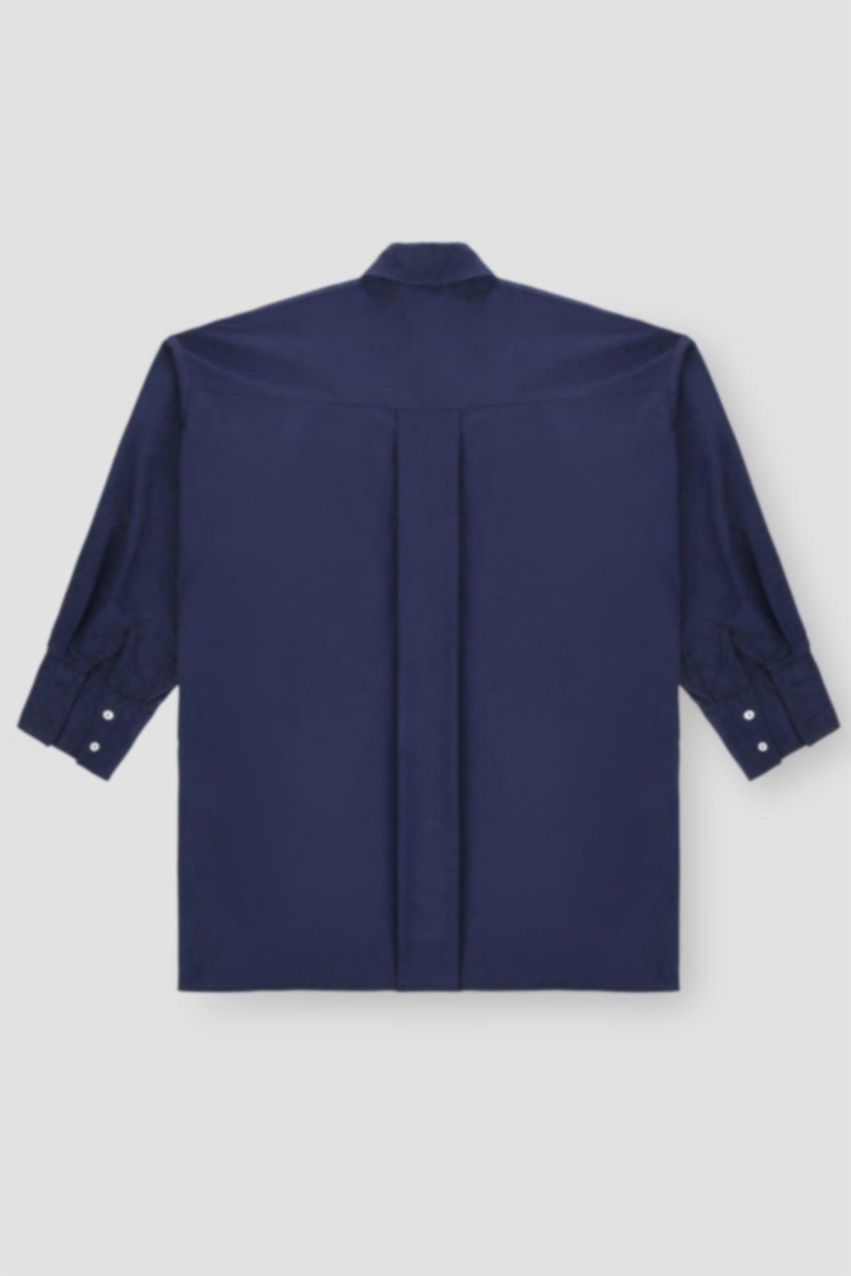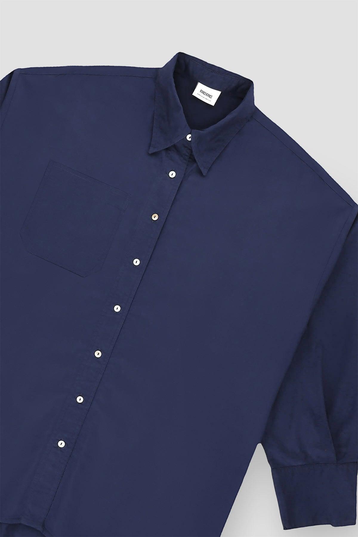 100% Cotton. Trendy And Casual Solid Shirt With Regular Collar And Button Down Closure. Straight 3 Quarters Cuffed Sleeves. Rear Box Pleat With Rear Drop Cut Hem Line.