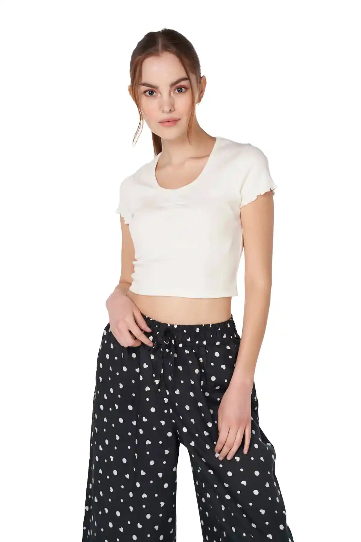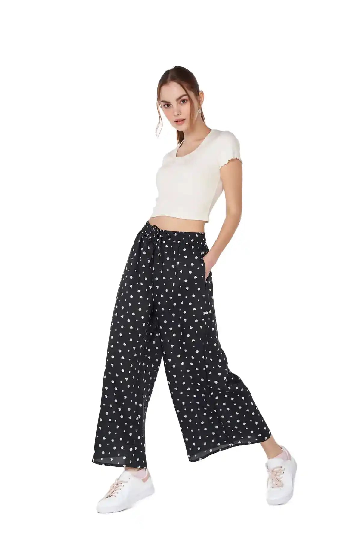 Elasticated Waistband With Drawstring. Wide Hem