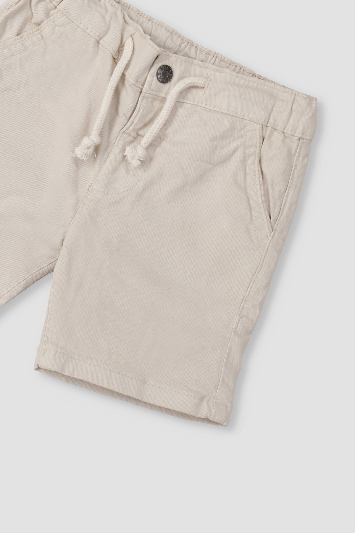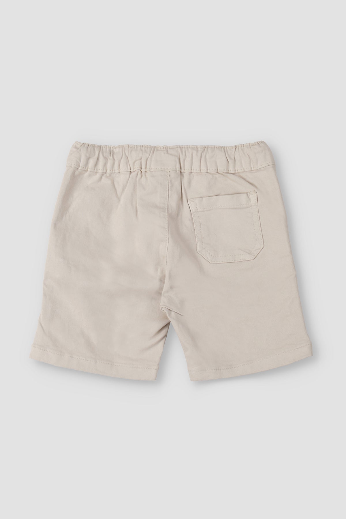 Cotton Poplin. Chino Shorts With Adjustable Waistband. Center Front Snap Button And Drawstring. Front Slash Pockets. Back Single Patch Pocket