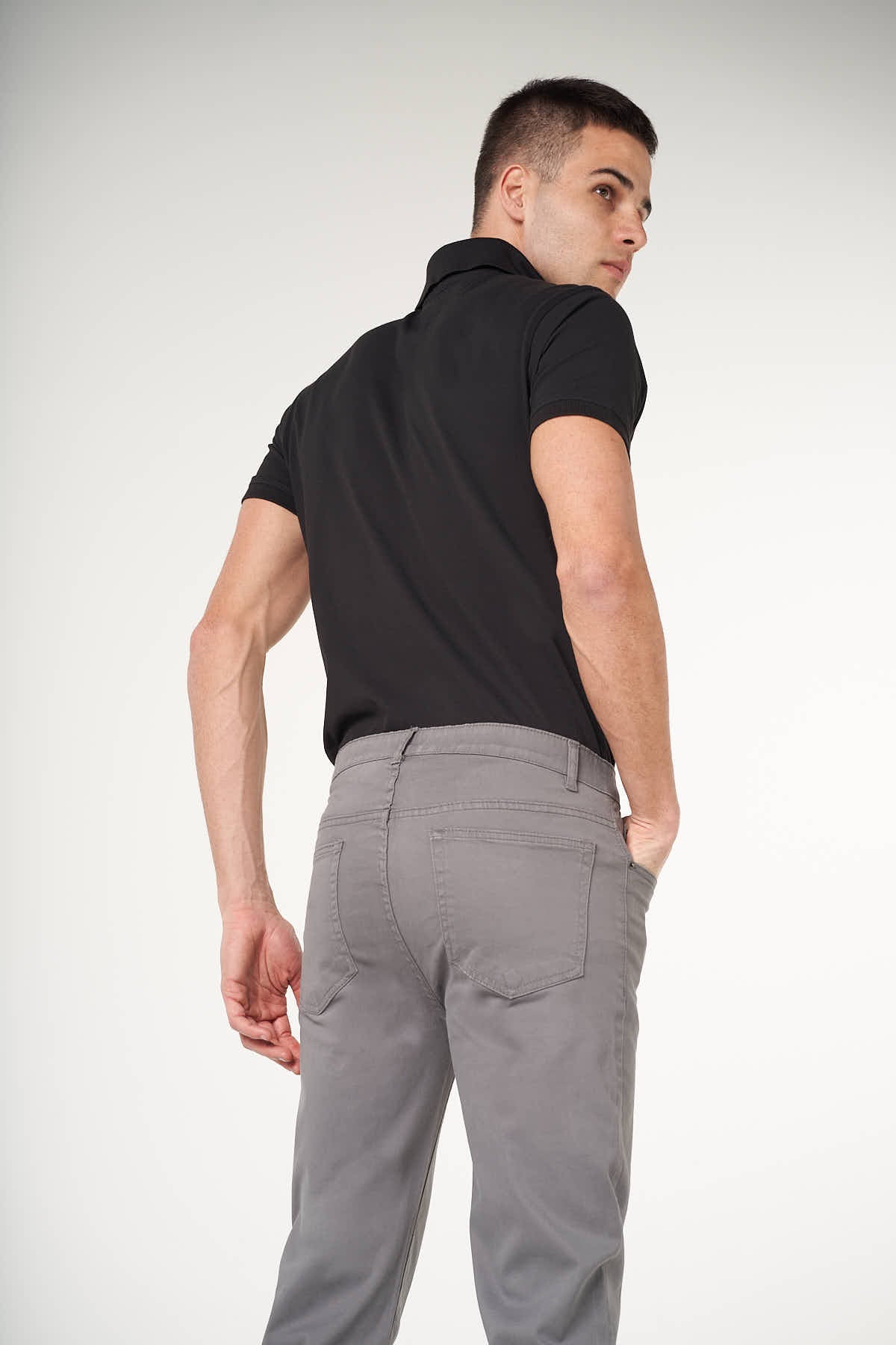 Regular Waistband With Button And Loops. Front Slash Pockets. Rear Welt Pockets