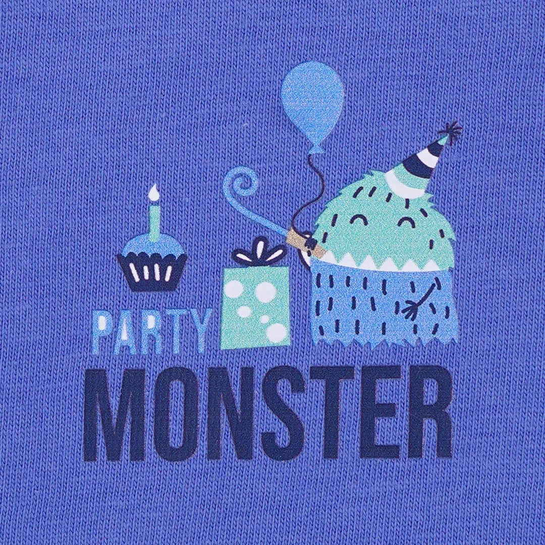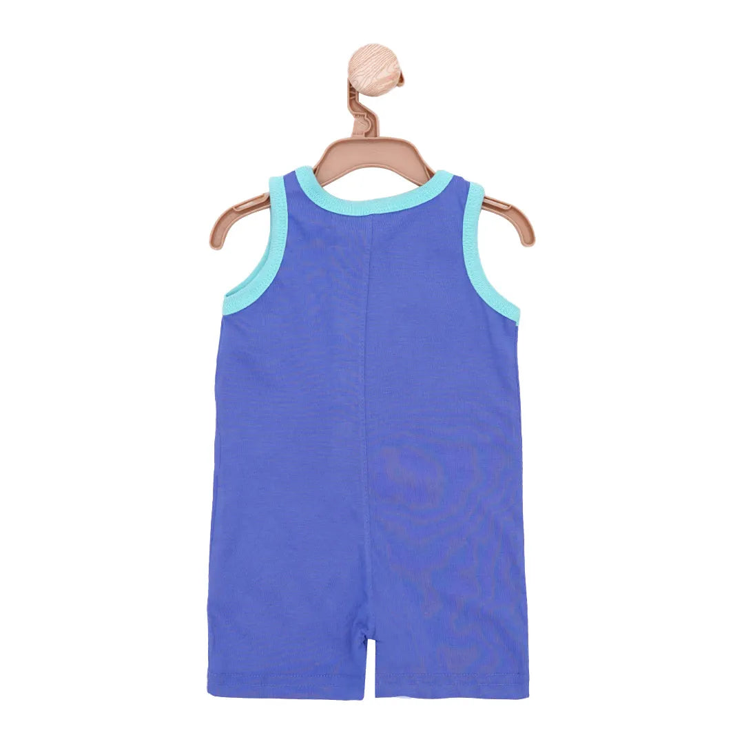 Behold the soothing blue hues and adorable design of our cosmic party sleeveless romper. The nest brings you a whole lot of wonderful outfit options for your baby boy this summer with our monster at a party collection. Our cosmic party sleeveless romper is crafted from soft and breathable single jersey fabric, that lock moisture out of the body, to keep your baby protected from rash and soreness during summer heat. The snap-button enclosure ensures an easy-breezy diaper and outfit change for moms.
