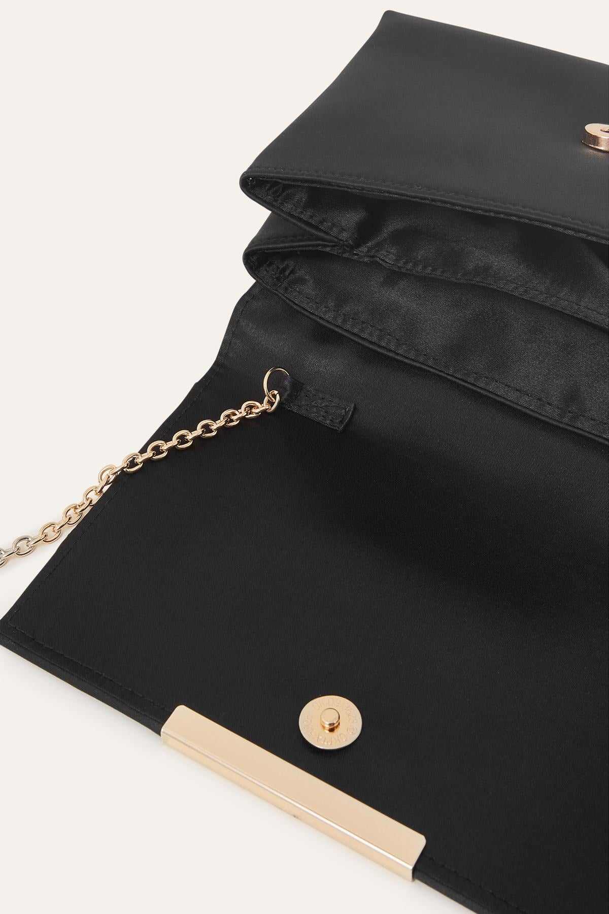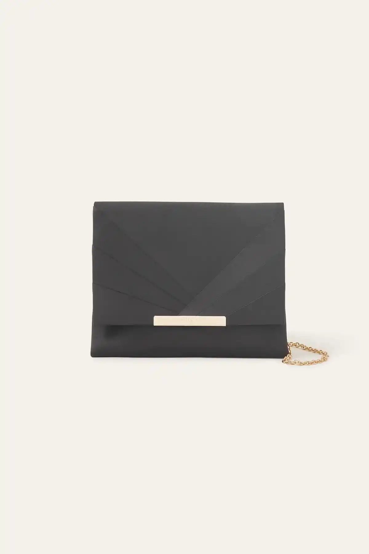 From weddings to work parties, this clutch bag is finished with a sleek satin fabrication that's perfect for special occasions. It features panel detailing to the fold over flap, with gold hardware that boasts the Accessorize logo. With just enough room to fit your party essentials, it fastens with a magnetic snap closure and has an option chain strap for hands free carrying.