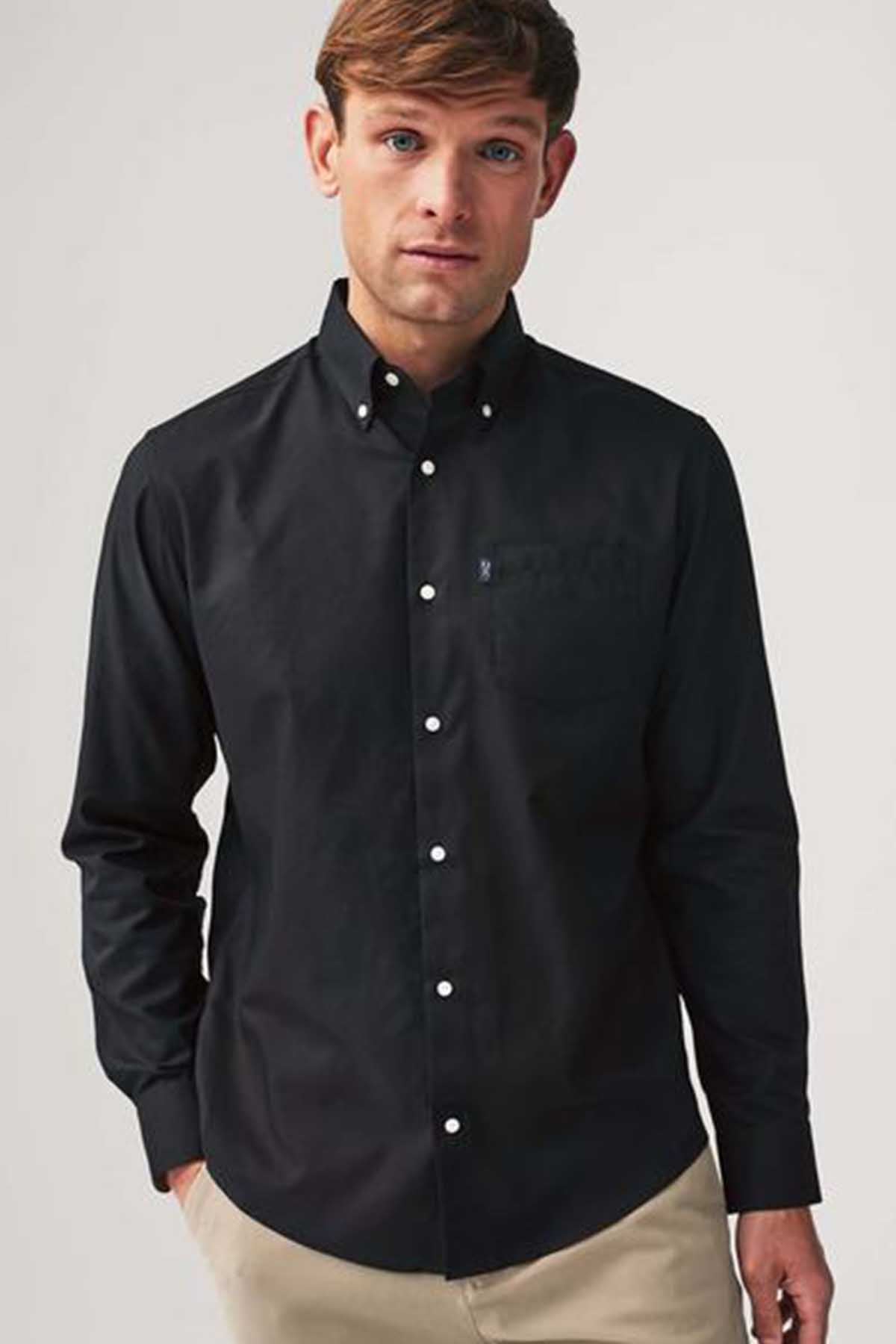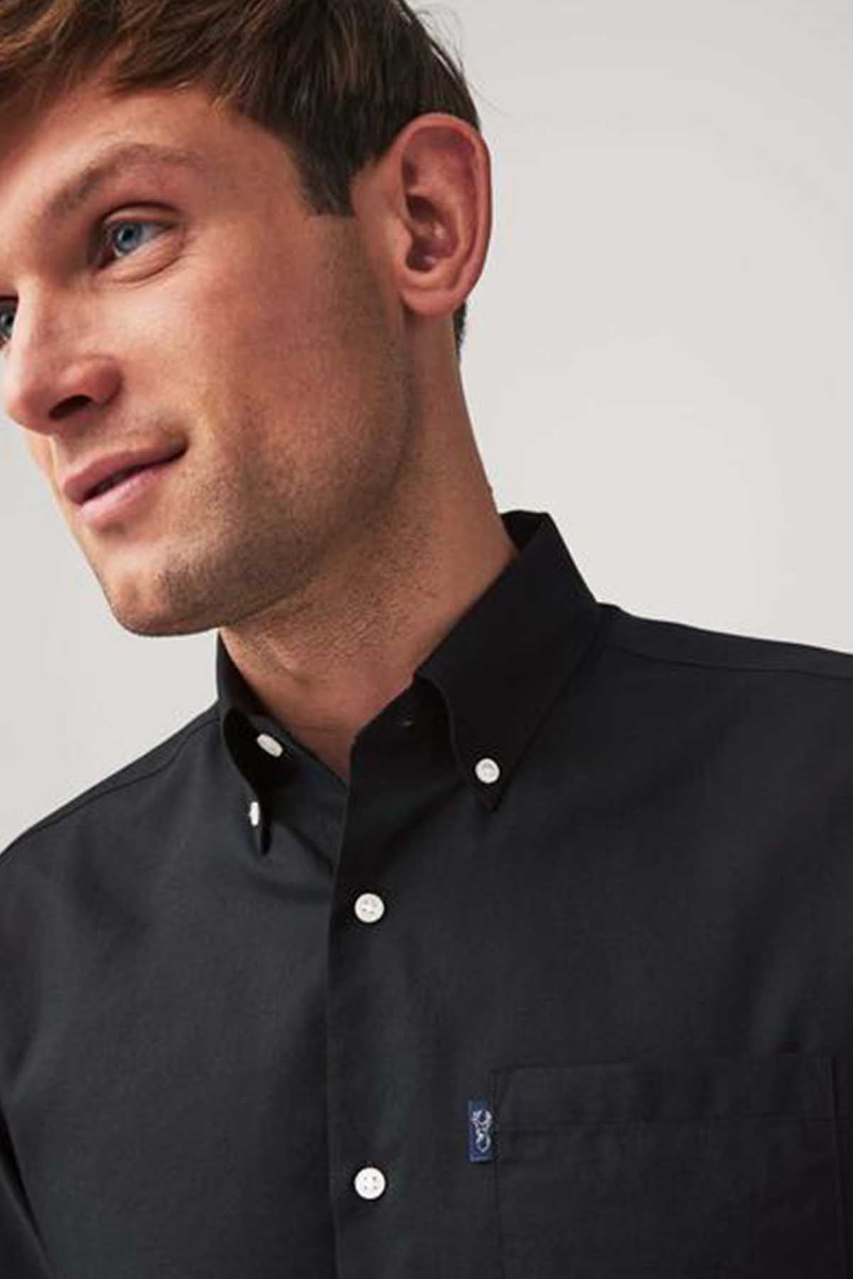 Black Regular Fit Button Down Easy Iron Oxford Shirt