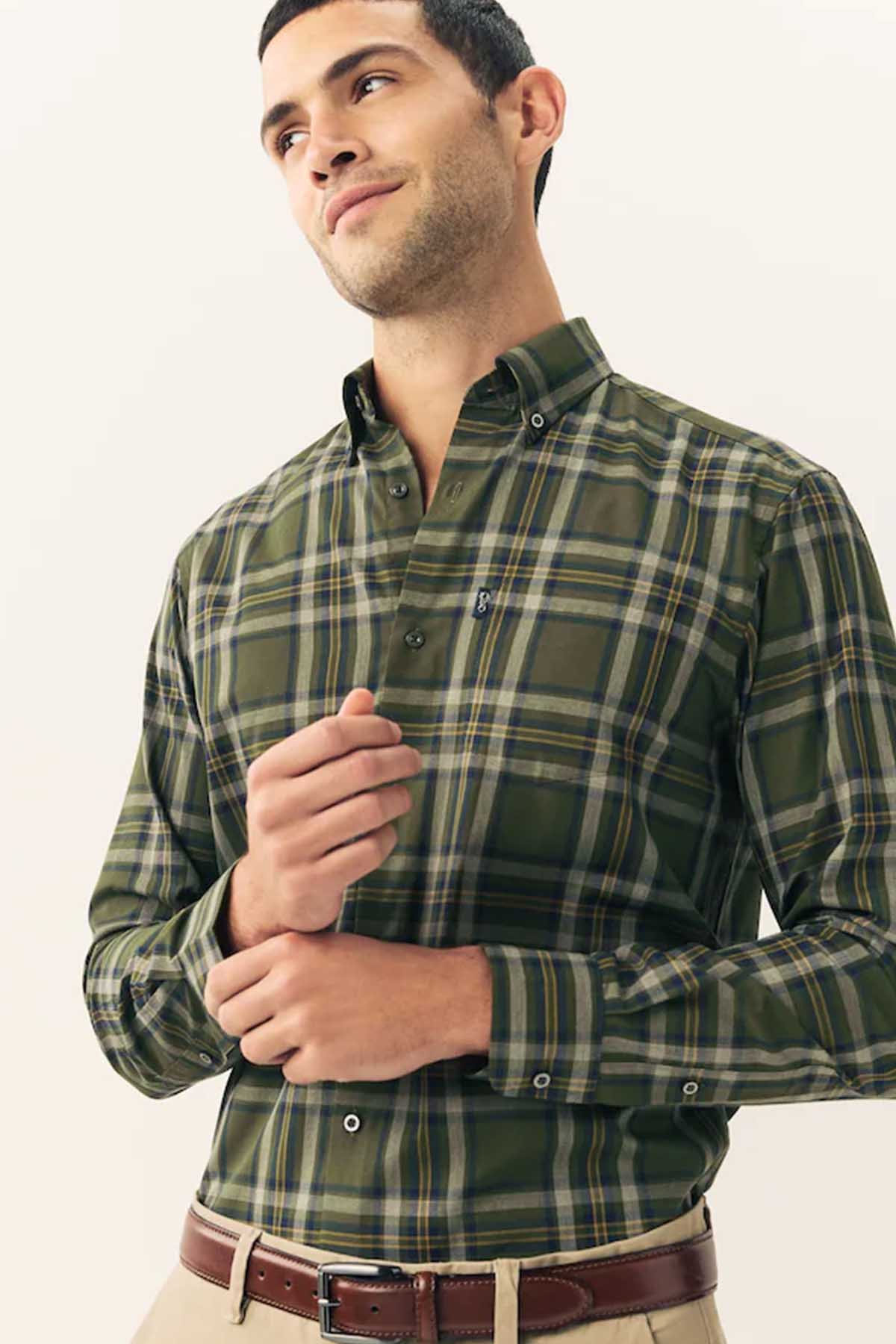 Green Blackwatch Regular Fit Easy Iron Button Down Oxford Shirt