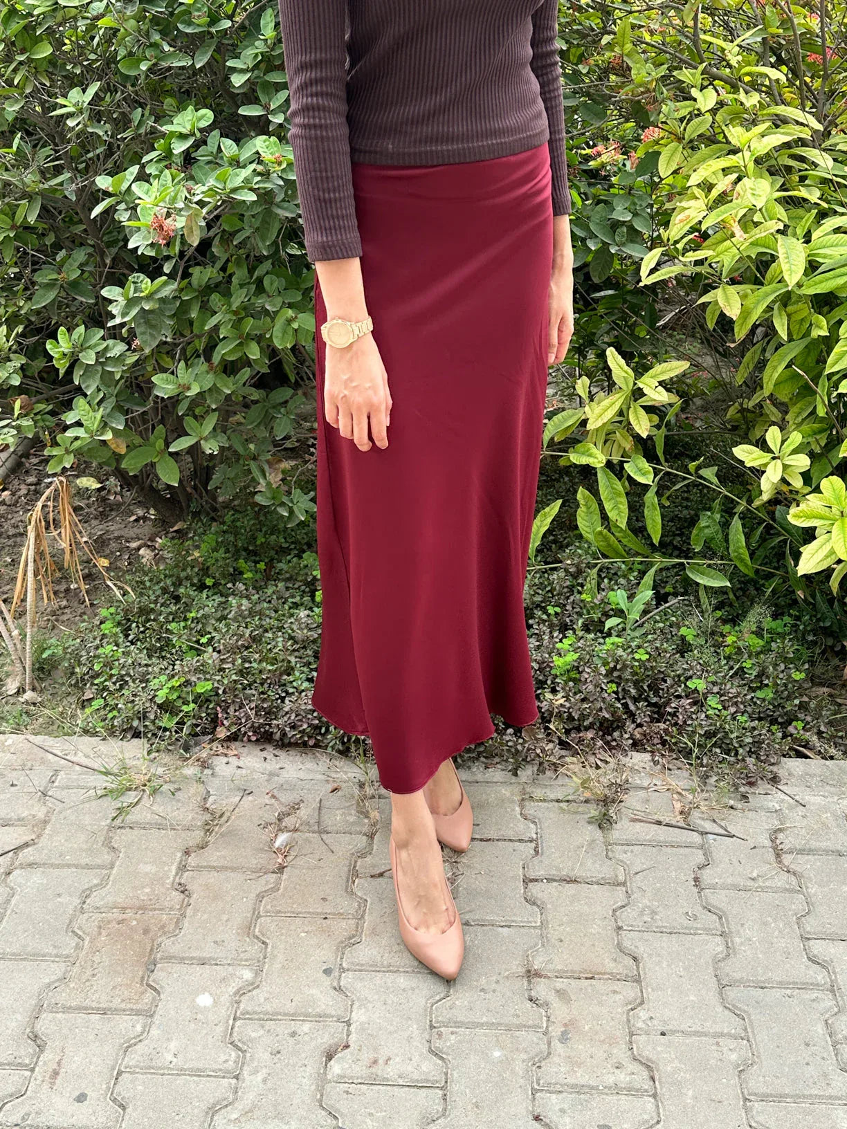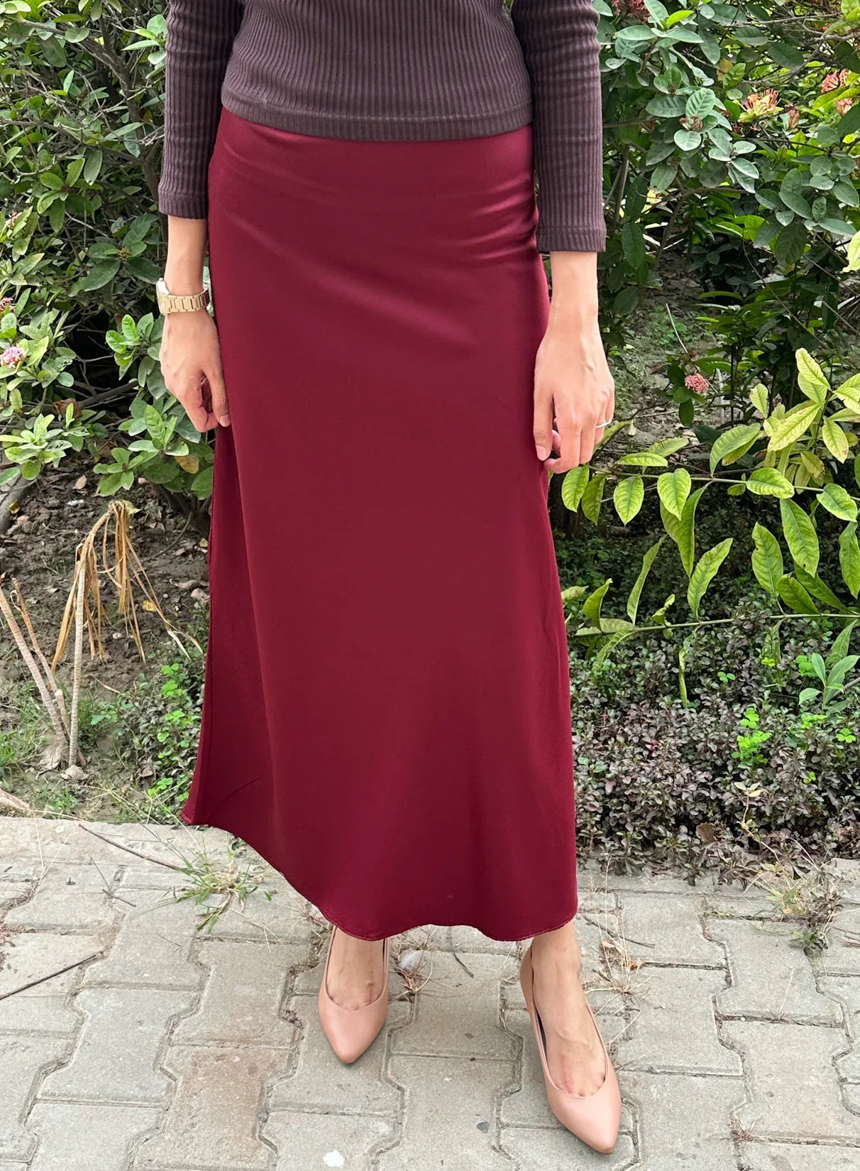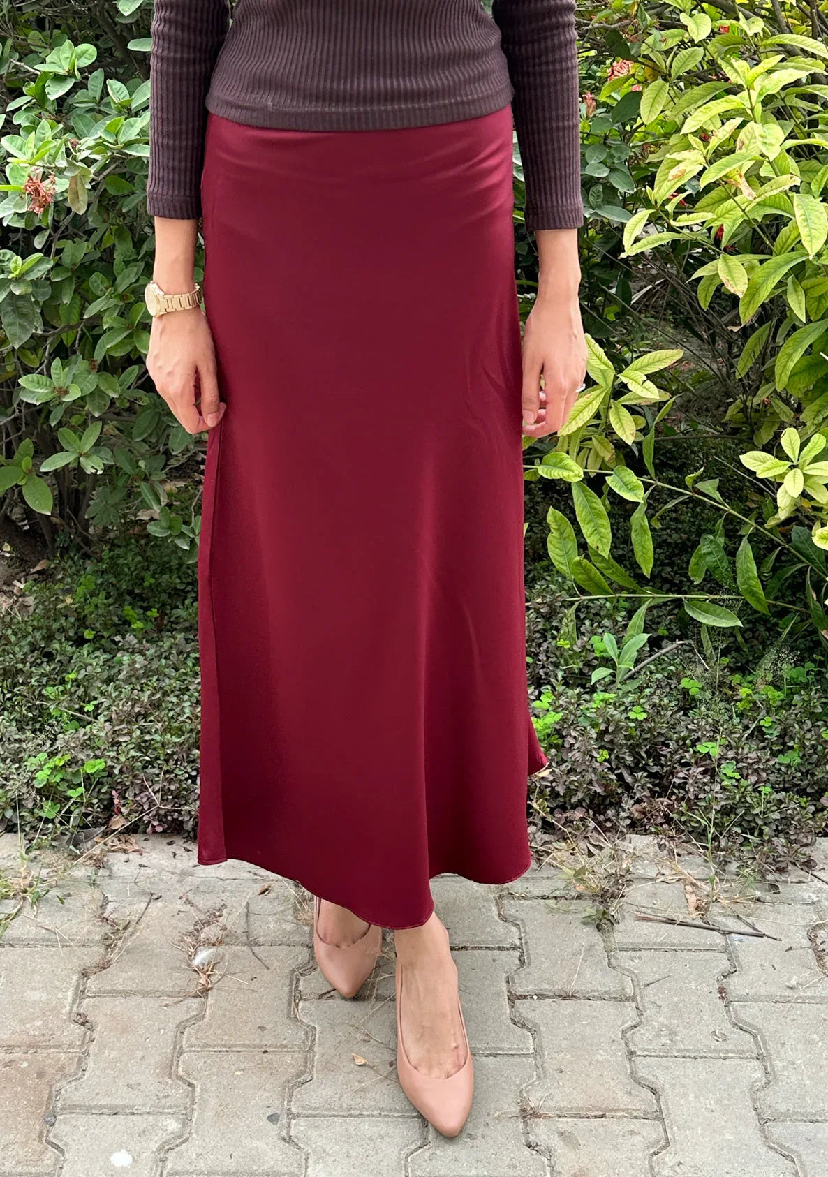 Silk skirt with elastic and flowing silhouette. Luxurious fabric and elegant drape. Perfect for elevating any outfit with a touch of sophistication.