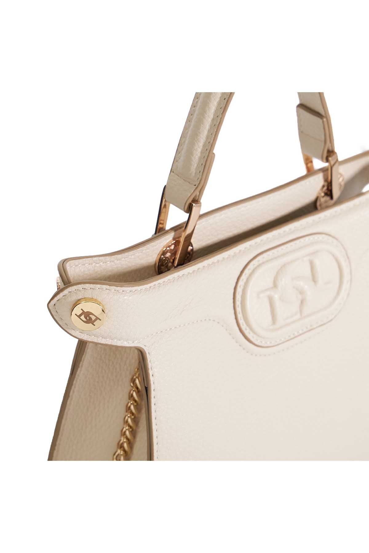 Our Timeless Daily Tote Bag Features An Embossed Logo And Top Handle. The Central Monogrammed Lined Compartment Is Perfect For Your Day-To-Day Essentials While The Part Chain Shoulder Strap Can Transform The Look From A Shoulder Bag To A Cross Body And Adds To The Versatility Of This Chic Style.