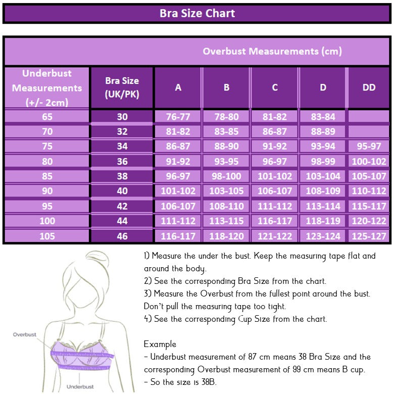 The Control Bra is a highly supportive, non-wired bra featuring a three-part cup design with delicate embroidery on soft cotton fabric. It includes wide side wings made with power net for enhanced control and comfort, along with flexible side bones for added support. The bra is equipped with adjustable 17mm and 20mm wide straps and a hook-and-eye fastener offering two and three width adjustments for a secure fit. Designed with non-allergic, durable plastic hardware, it is available in cup sizes B, C, D, and DD.