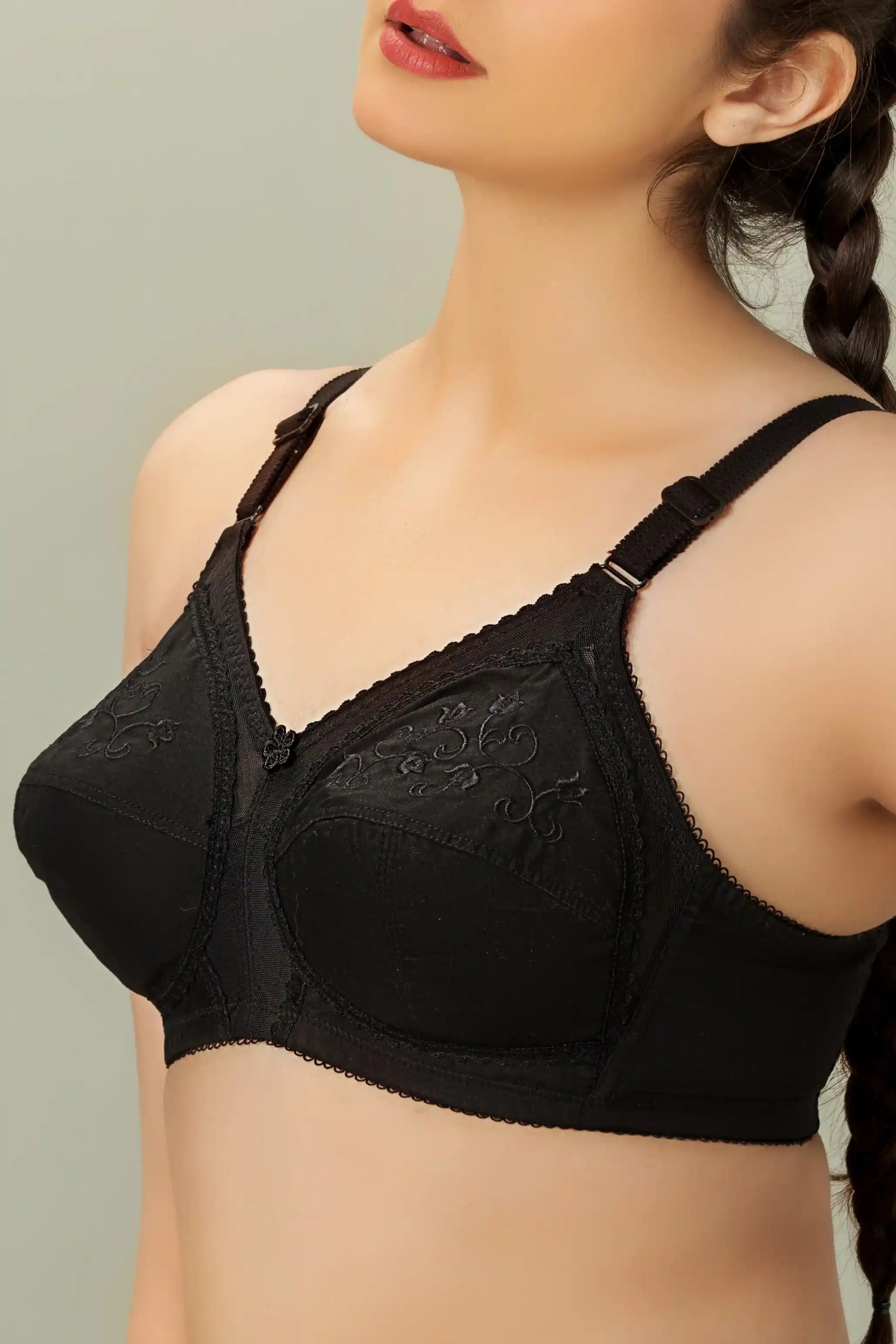 Doria Cotton Cotton Embroidered Unpadded Control Bra Black