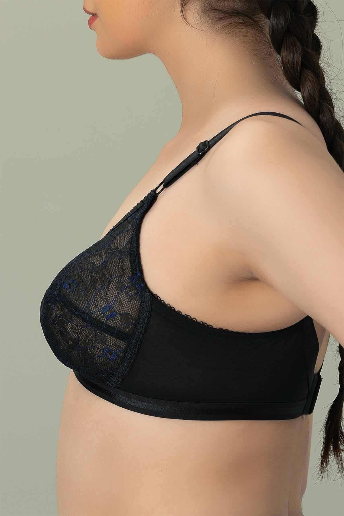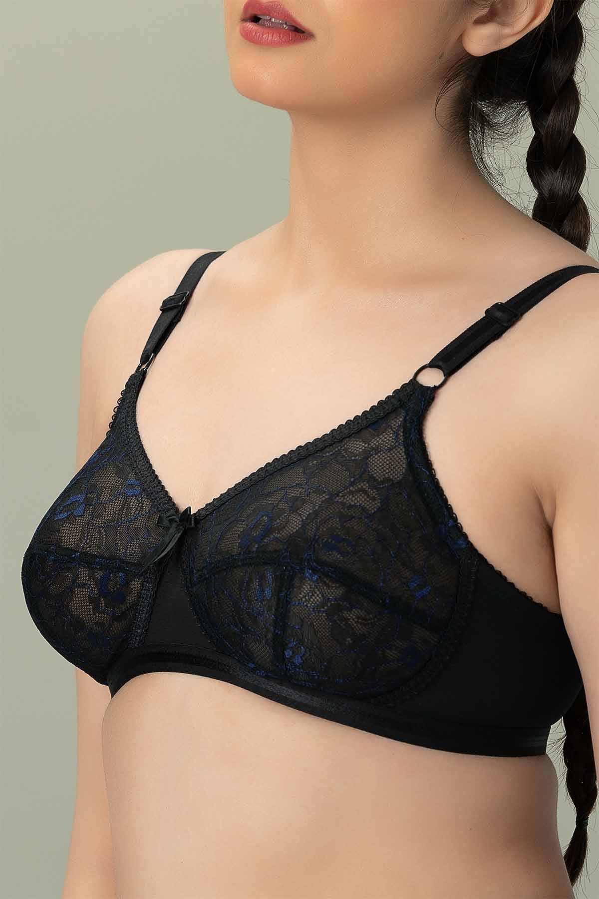 X Over Trendy Soft Lace Unpadded Crossover Bra Black