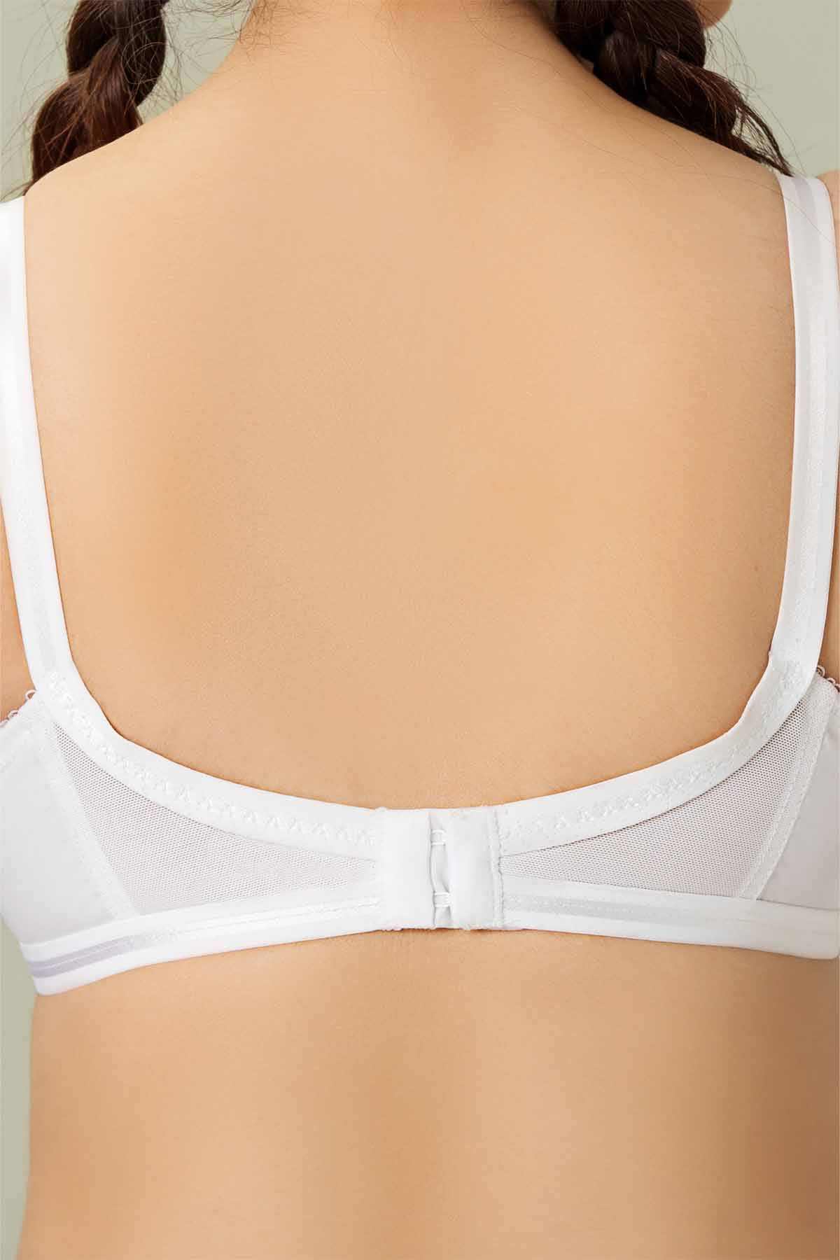 This innovative three-part cup design bra offers perfect bust support, creating a naturally stunning cleavage. The crossed, wide, sewn-on elastic top edge provides extra support and lift for the breasts. Delicate floral embroidery adds a touch of elegance to the cups. The bra features adjustable, comfortable 16mm wide straps and a hook-and-eye fastener with two or three width adjustments for optimal support. Made from allover cotton fabric and finished with non-allergic, long-lasting plastic hardware, it is available in cup sizes B, C, and D.