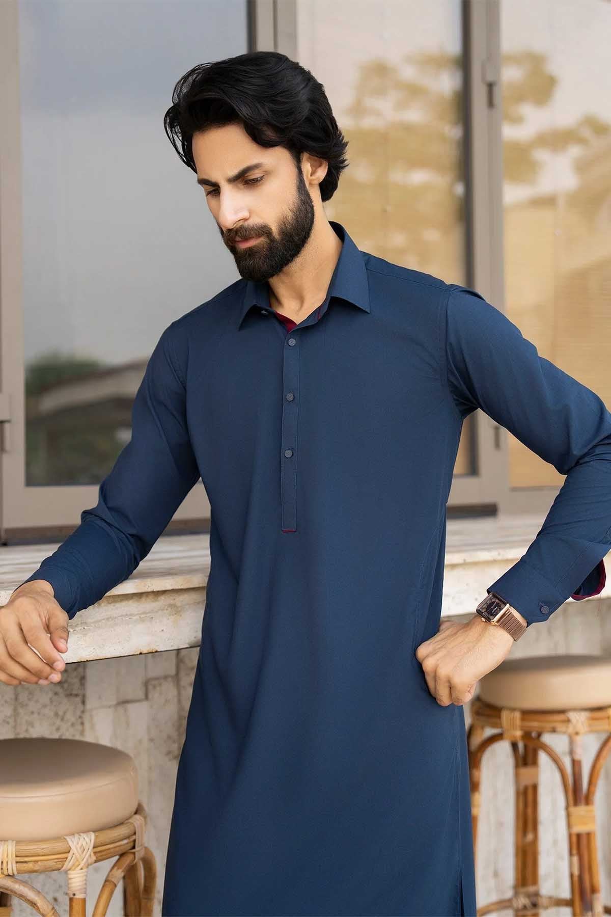 Shalwar Kameez set in Royal Blue is a must-have for your summer wardrobe. The straight-cut top and loose-fit bottoms offer comfort and style, perfect for daily wear. Crafted with premium wash & wear fabric, this 2-piece ensemble exudes elegance. Ideal for any summer occasion.