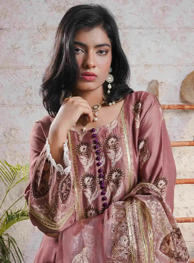 Complete your ensemble with our raw silk bottoms and a graceful organza dupatta for a standout look that exudes sophistication. With a shirt length of 48 inches, this outfit offers a refined and timeless silhouette for any occasion.