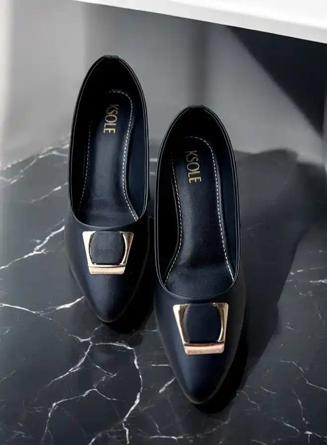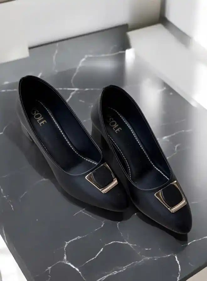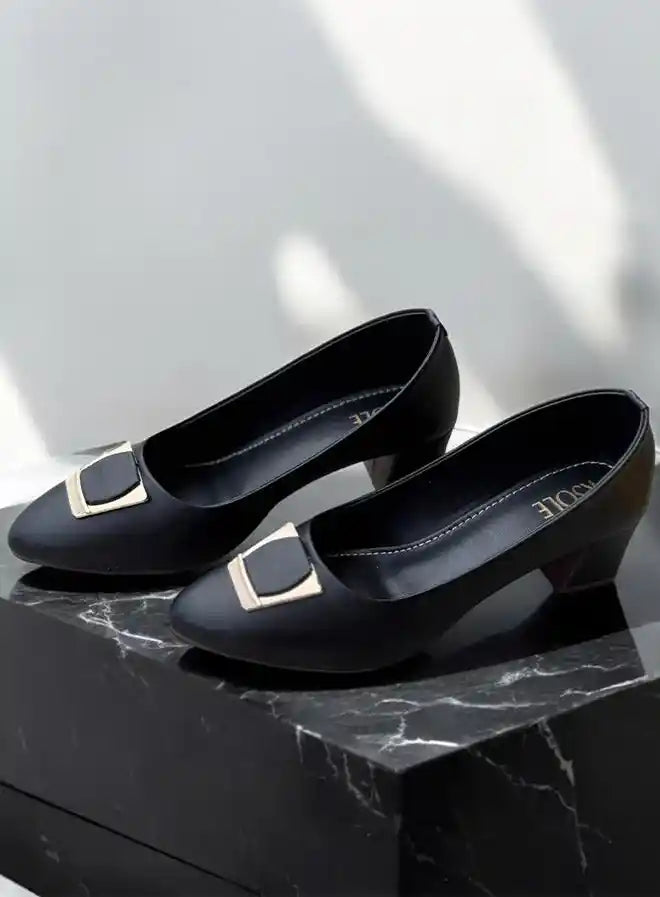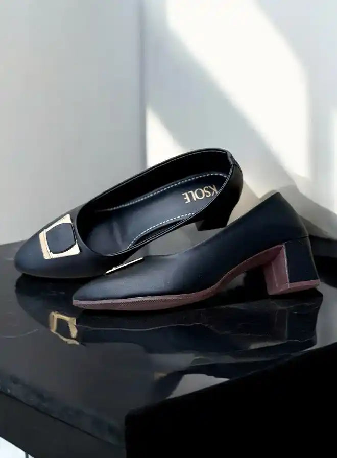 Comfortable medium heel shoes with leather upper, soft insole and anti-slip patch on the heel.