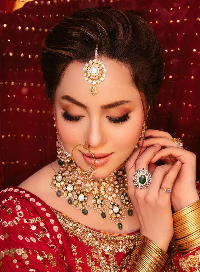 For added sophistication, this ensemble can be complemented with a kamdani or mukesh chunri silk shawl. A true all-season bridal piece, this outfit is designed to make any occasion unforgettable.