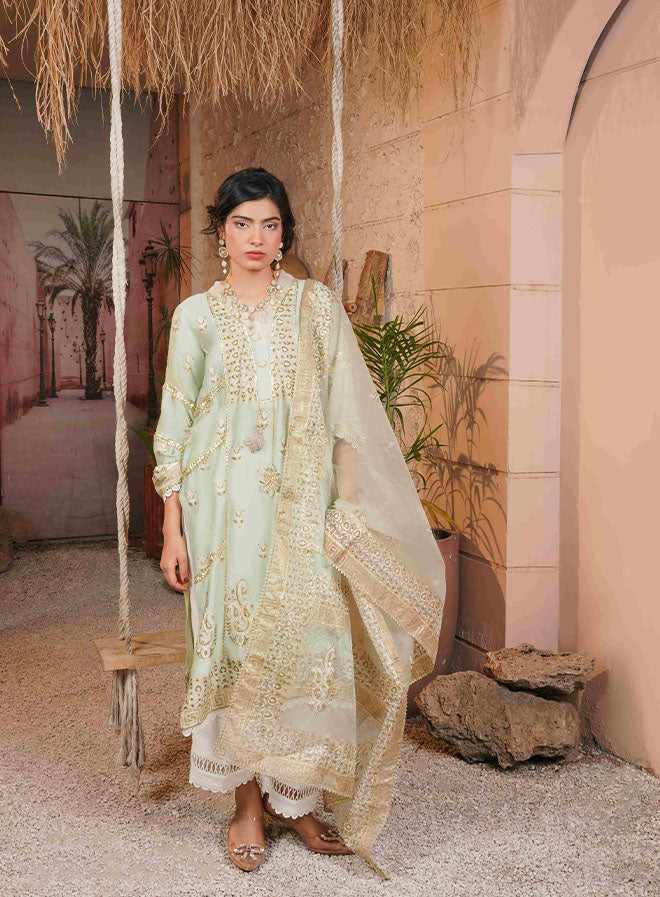 Complete your ensemble with our raw silk pants and a graceful organza dupatta (as shown) for a standout look. With a shirt length of 48 inches, this outfit offers a timeless silhouette, perfect for both everyday elegance and special occasions.