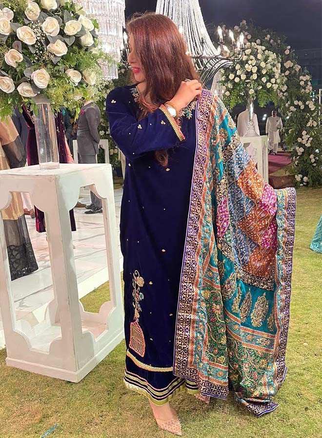 Introducing Nina, a stunning hand-worked velvet ensemble that embodies luxury and elegance. This exquisite outfit features a rich velvet shirt and matching trouser, adorned with intricate details of qora, dabka, sequence, resham, and stones, creating a mesmerizing visual appeal. The ensemble is beautifully complemented by a hand-worked silk shawl that adds an extra layer of sophistication, enhancing the overall look. Perfect for formal occasions, Nina is designed for those who appreciate timeless craftsmanship and contemporary style, making it an essential addition to your wardrobe.
