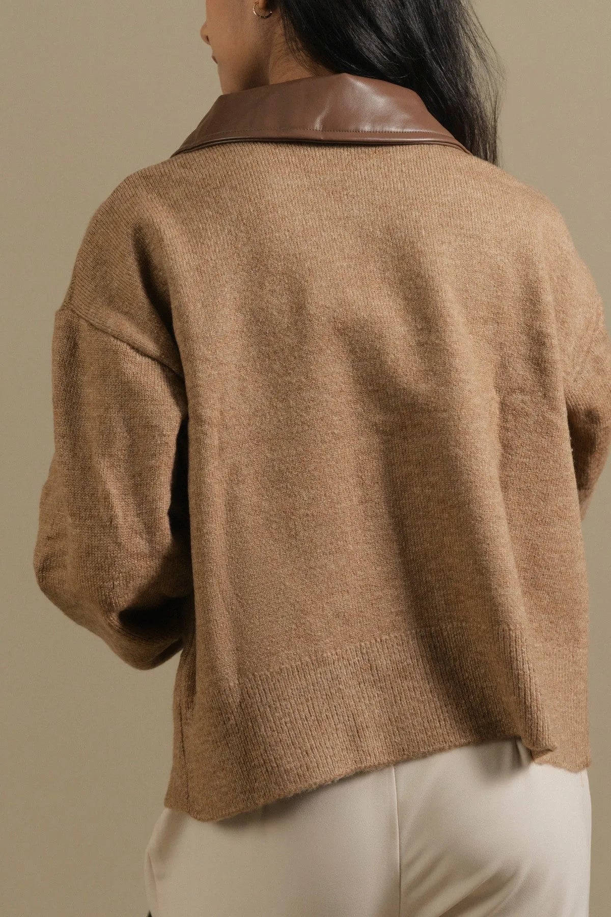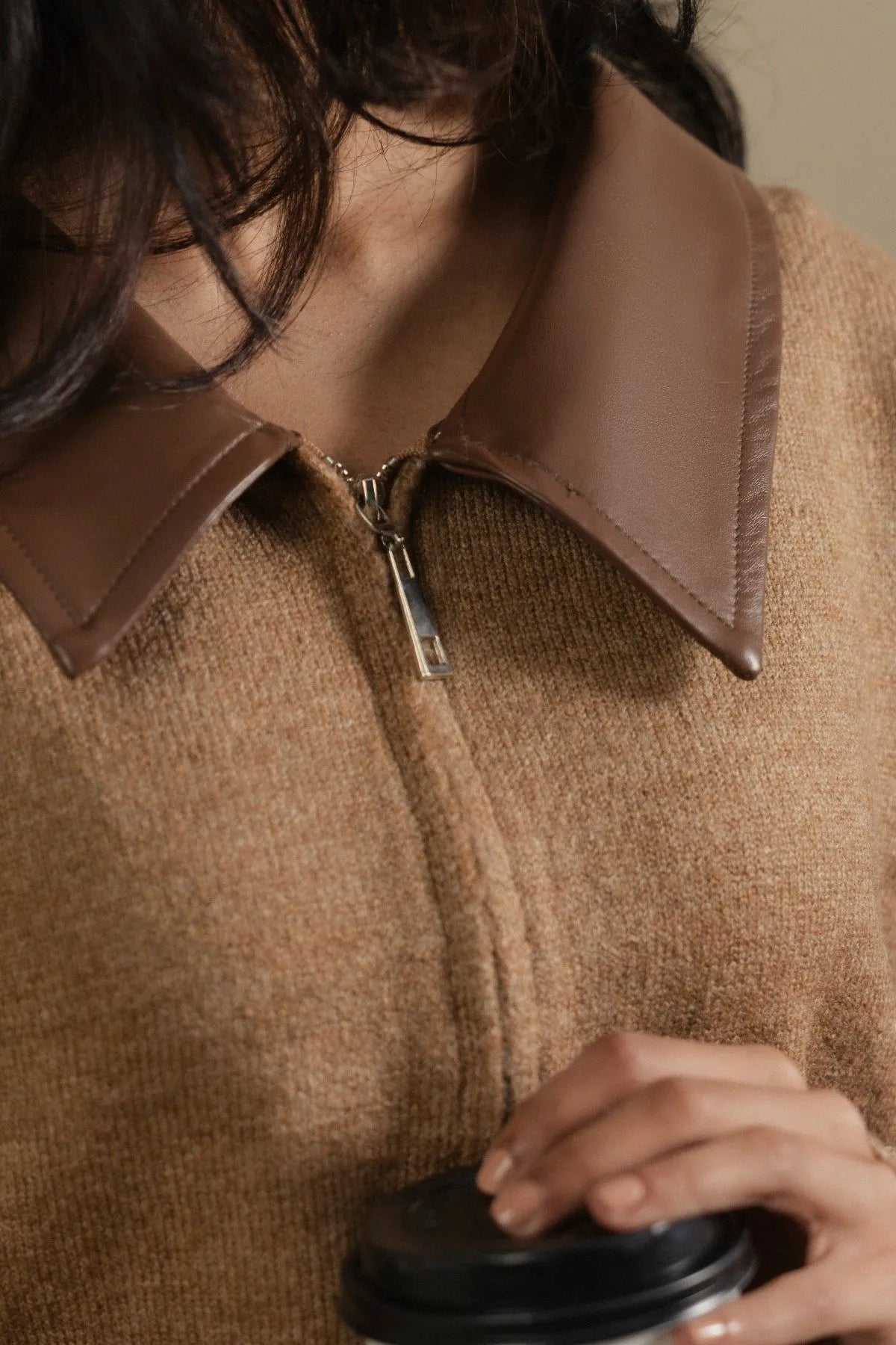Built with a premium polyester blend, this zip-front knit offers a balanced mix of softness and structure. The fabric sits cleanly on the body, while the front zipper introduces a sharp, contemporary edge. Finished with a contrast collar that adds definition, the piece feels intentional and well composed. Modern in shape and easy to style, it’s a confident everyday layer with a polished attitude.
