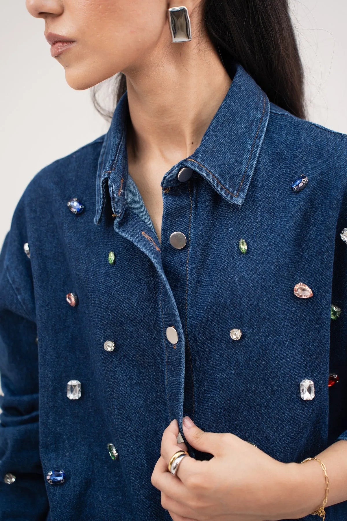 Beaded Denim Over Shirt