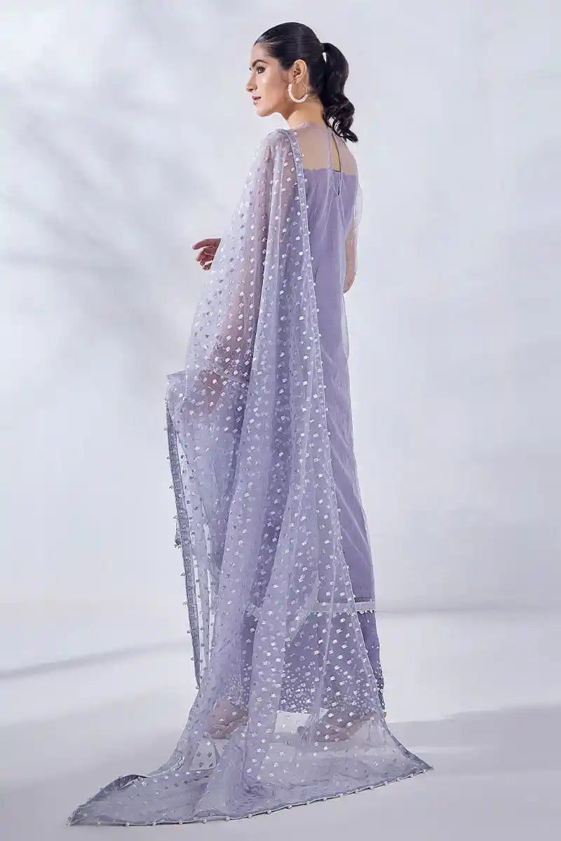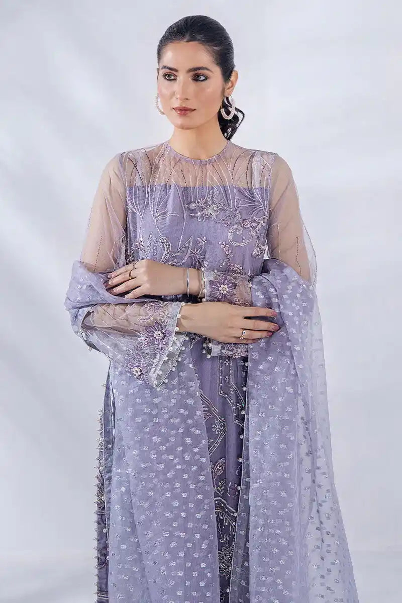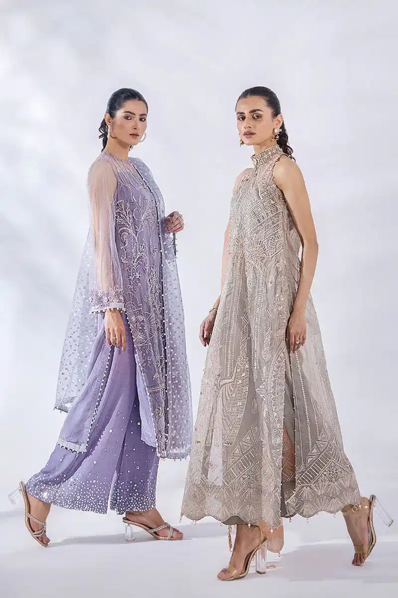 Ayla is adorned with intricate embroidery and hand embellishments, including pearls, cut dana, and glossy sequins. Paired with a hand embellished bell trouser and an appealing zari organza dupatta, this ensemble is so striking; it reflects the ultimate style statement.