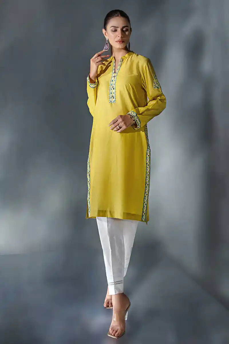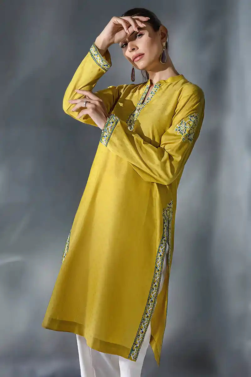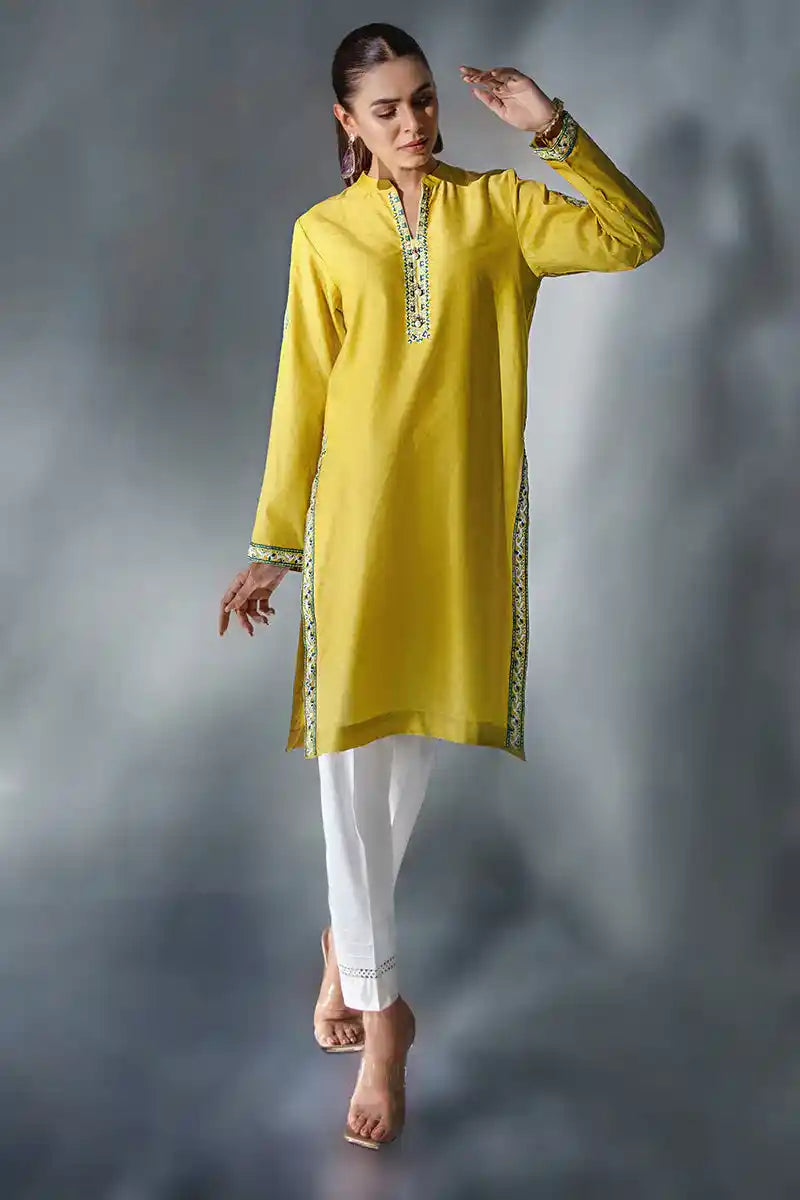 Brining to life the quintessential feminine magic of Malook “Isla’ features a classic (one-piece) silhouette in mustard hue, richly adorned with intricate delicate embroidery. Isla gives a classically chic look and brings the perfect look to your summer wardrobe.