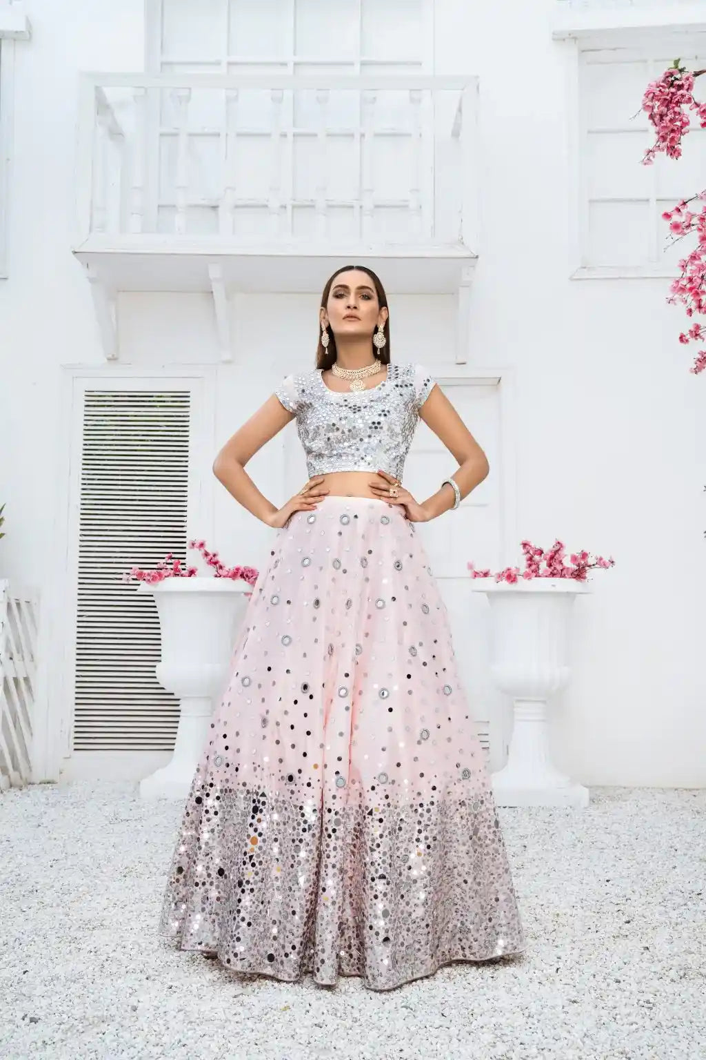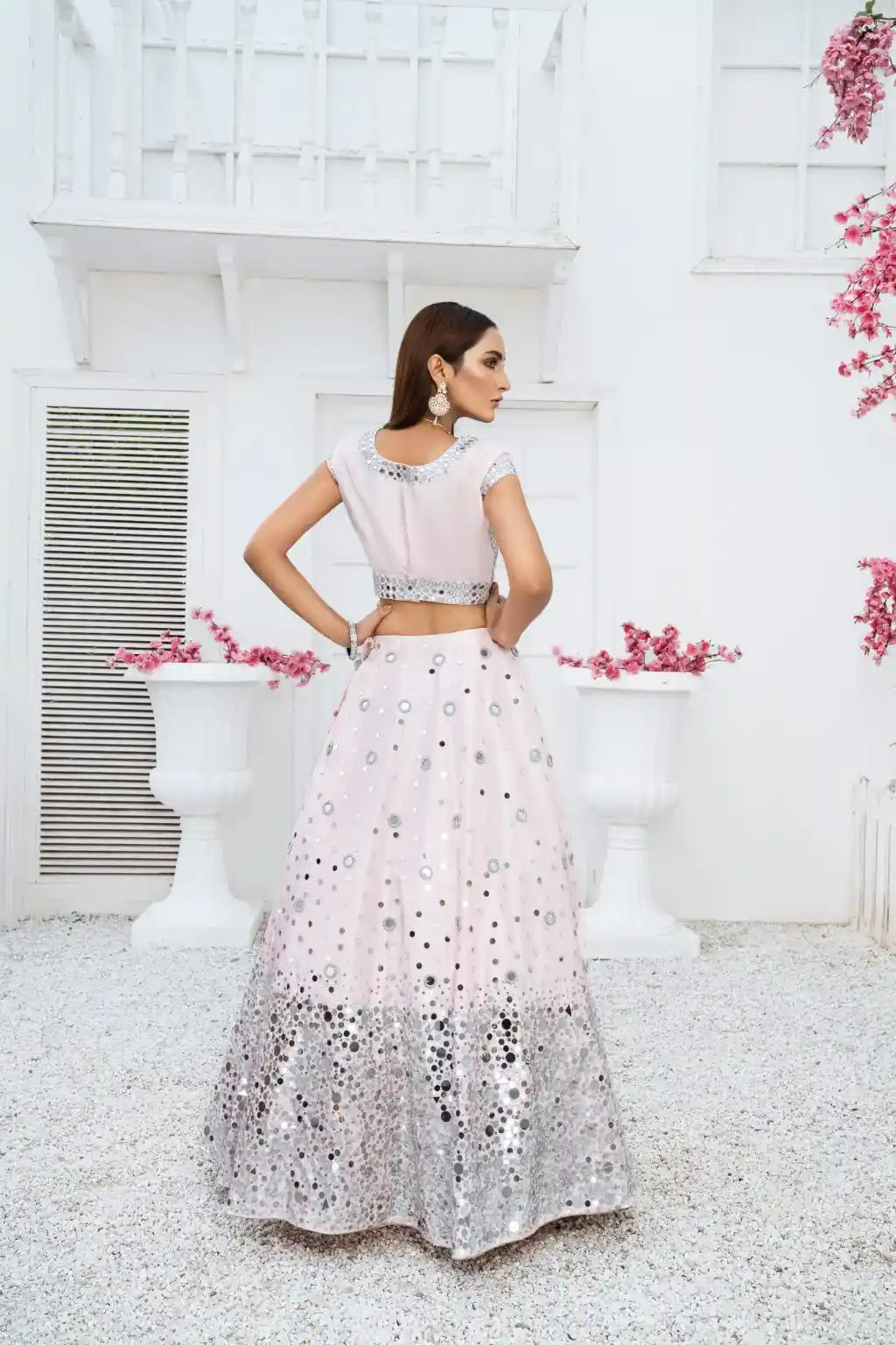 Feel like an ethereal princess in our sumptuous blush pink ensemble. This exceptionally