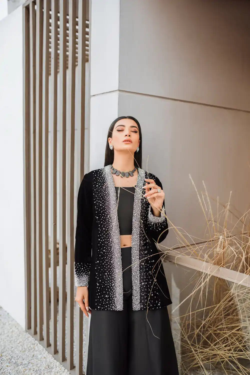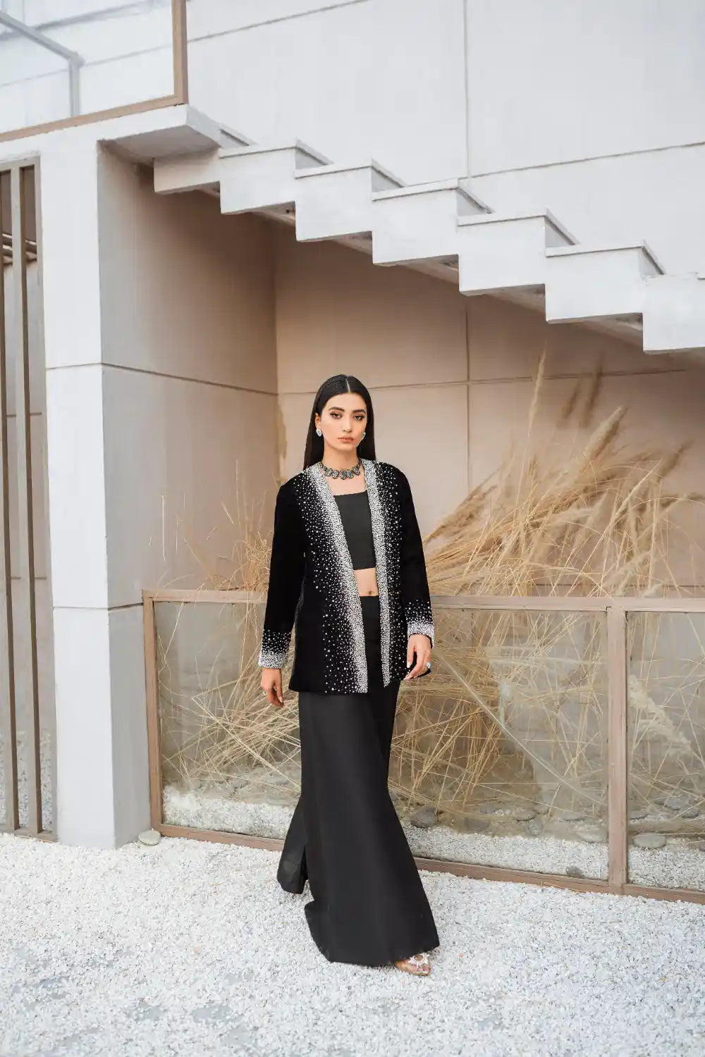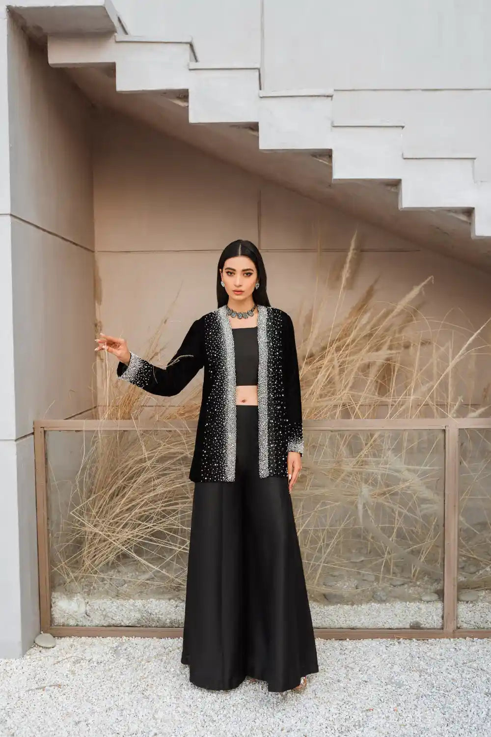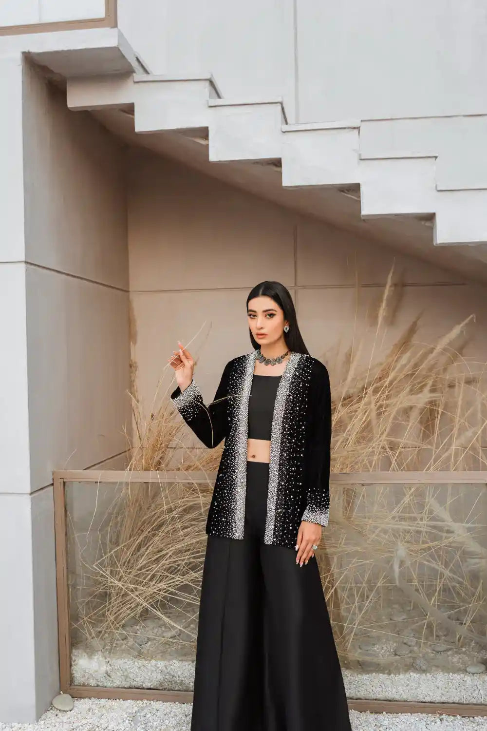 This is a 3 piece stitched outfit (Cape, Inner & Trouser)