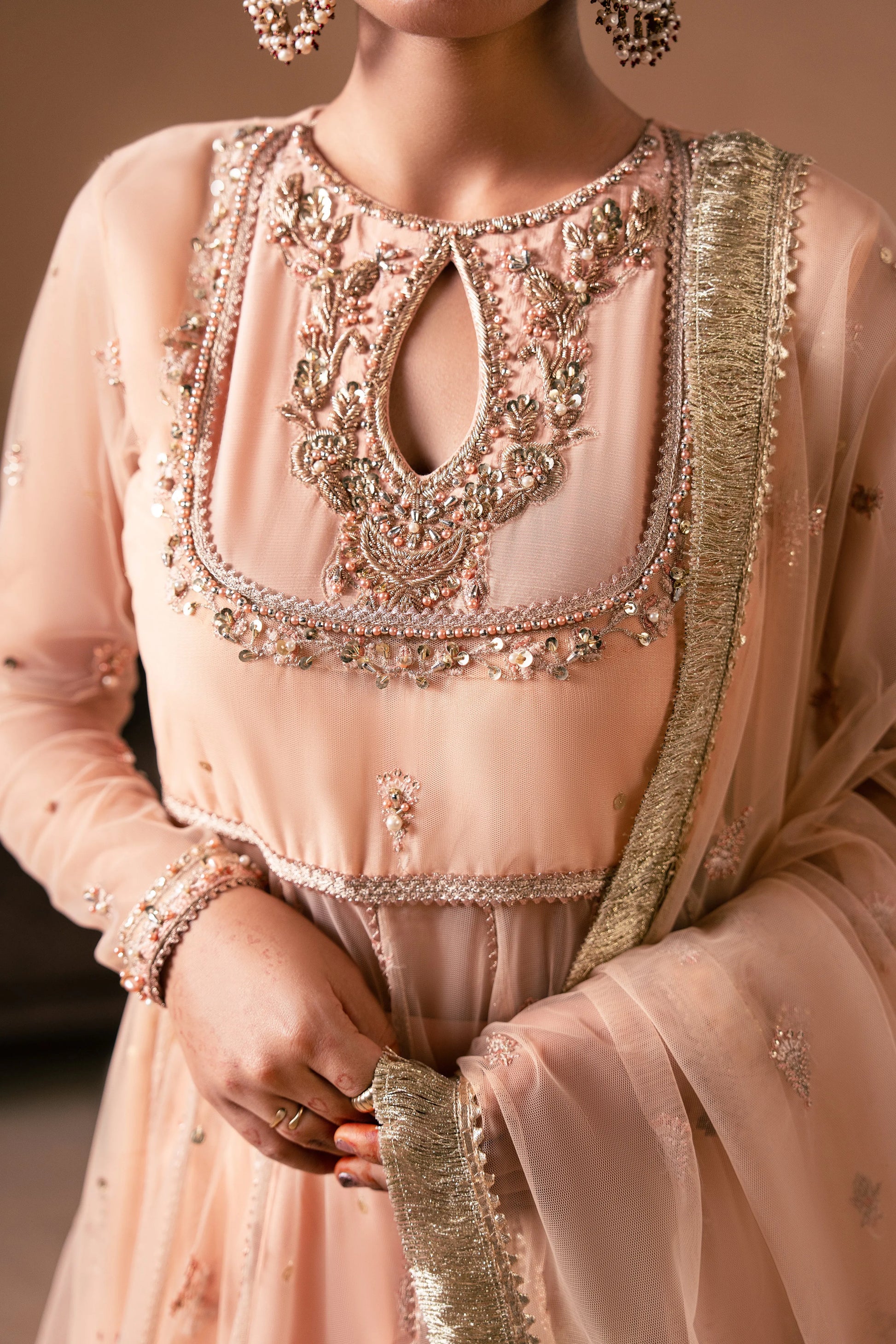 NET EMBROIDERED+HAND EMBELLISHED FRONT YOKE