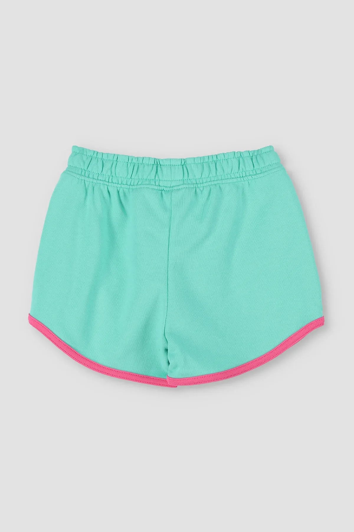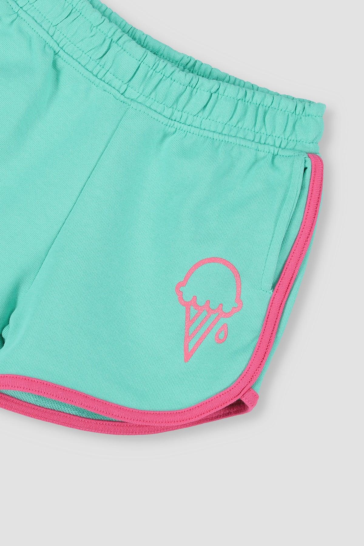 Cotton French Terry. Cone Illustration Daisy Shorts With Elasticated Waist. Sideseam And Hem With Trim Details