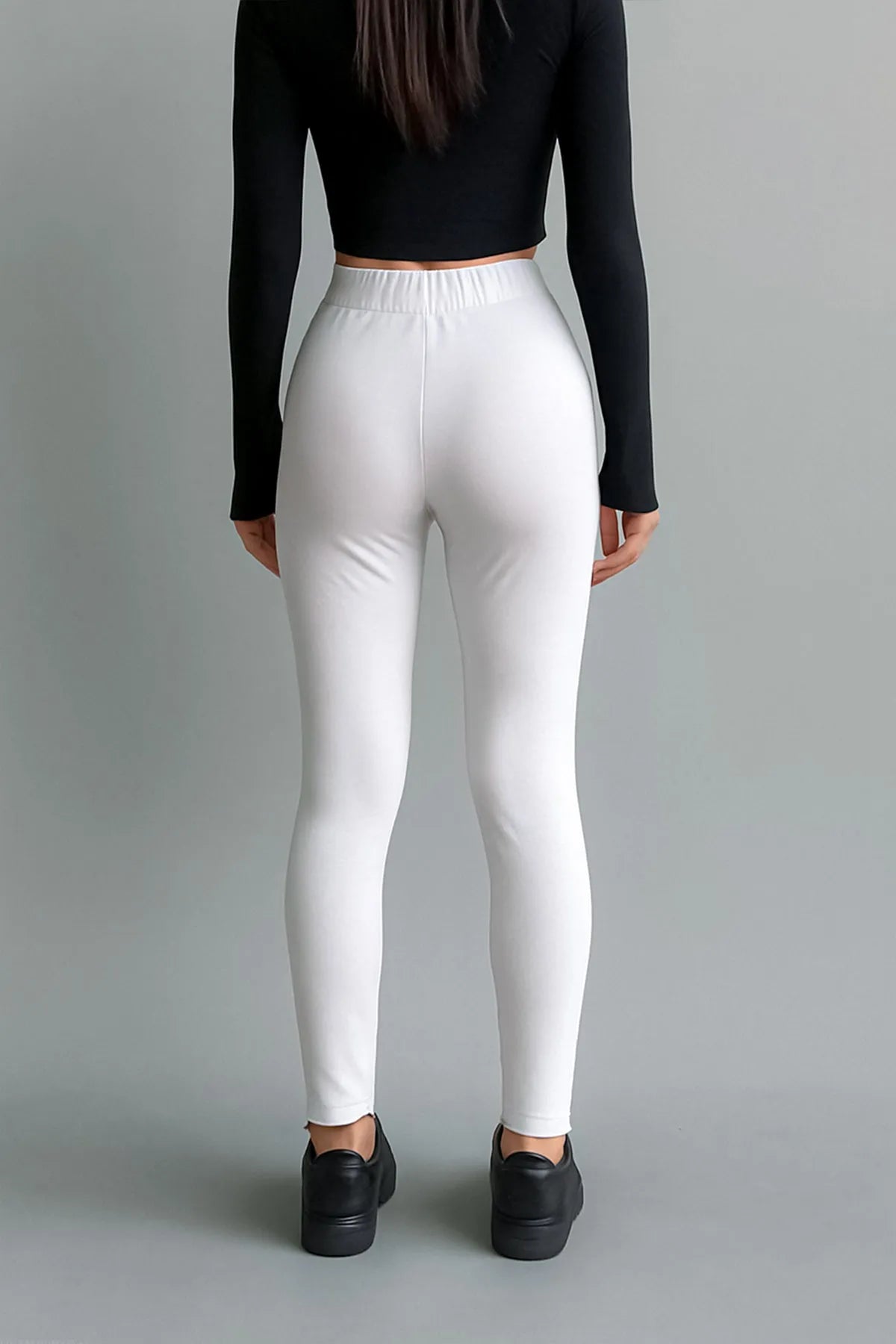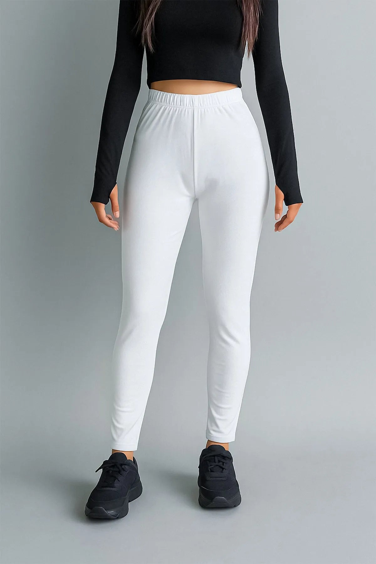 Crafted from soft, stretchable fabric, these leggings offer a supportive, second-skin fit that’s perfect for everything from lounging to light workouts. The crisp white color adds a fresh, minimal look that pairs seamlessly with oversized tops, tunics, or activewear. Designed for comfort and style, these leggings are all about feeling good and looking great