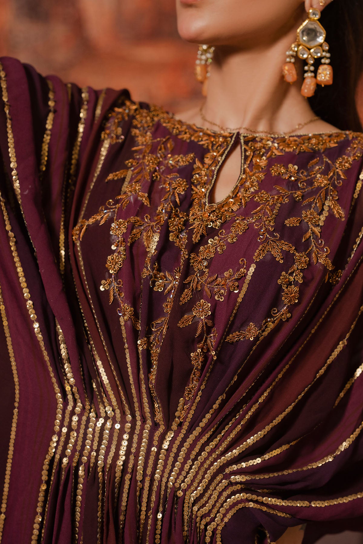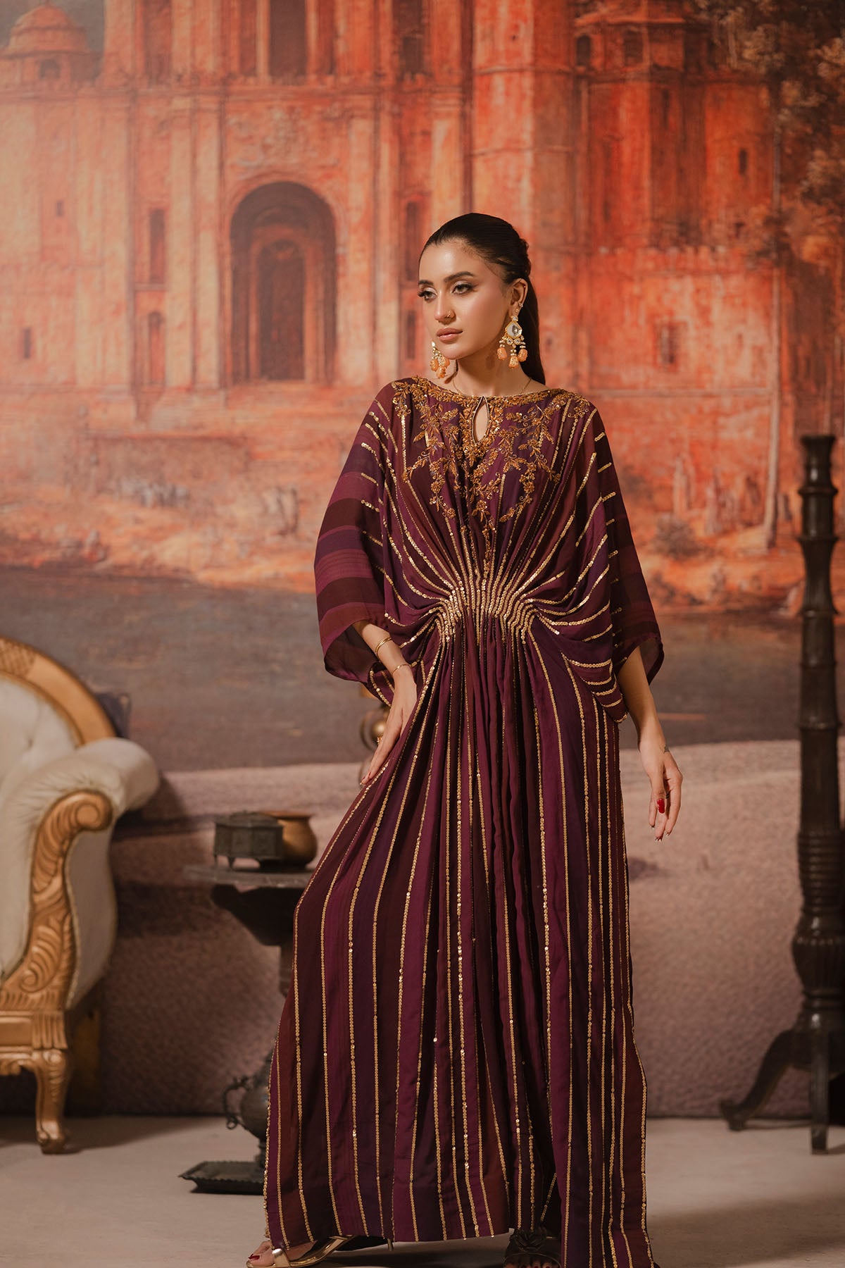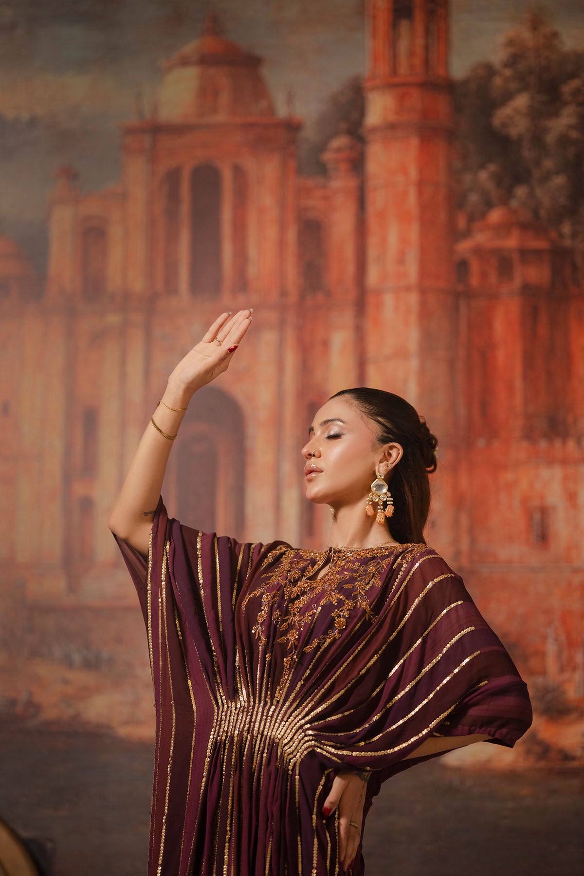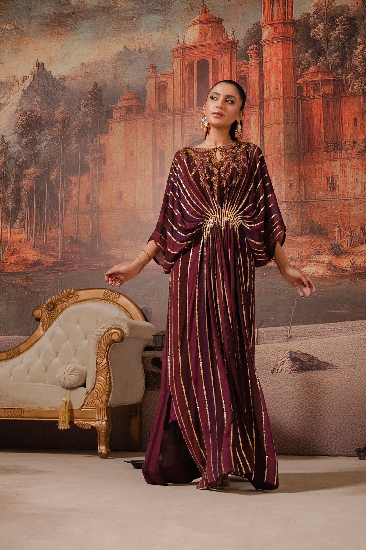 Lia - Festive Formal - Vol 3: The Ensemble Features A Digital Printed Kaftan Exquisitely Adorned With Zardoze And Sequins Embroidery All Over. Pearl And Bead Finishings. Paired With Bamboo Raw Silk Straight Pants And Under Shirt. Exudes An Air Of Effortless Elegance, Making It The Perfect Choice For Any Occasion.