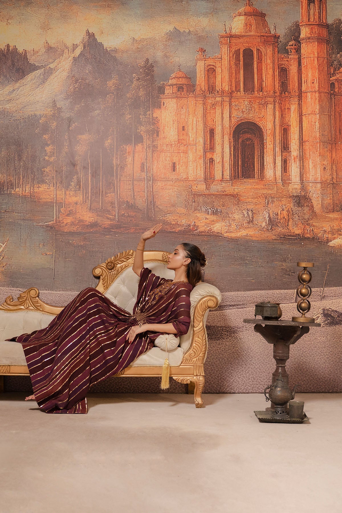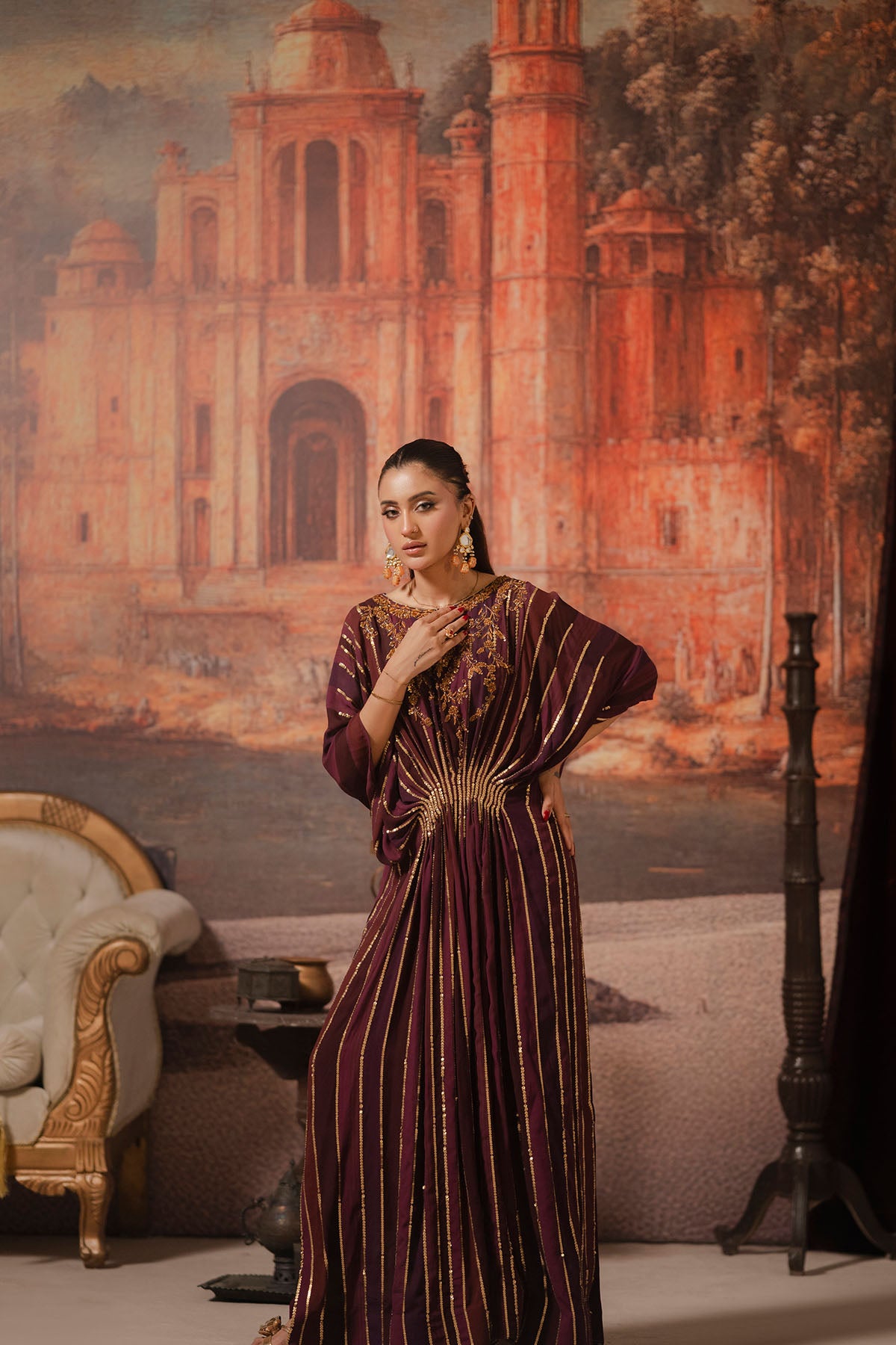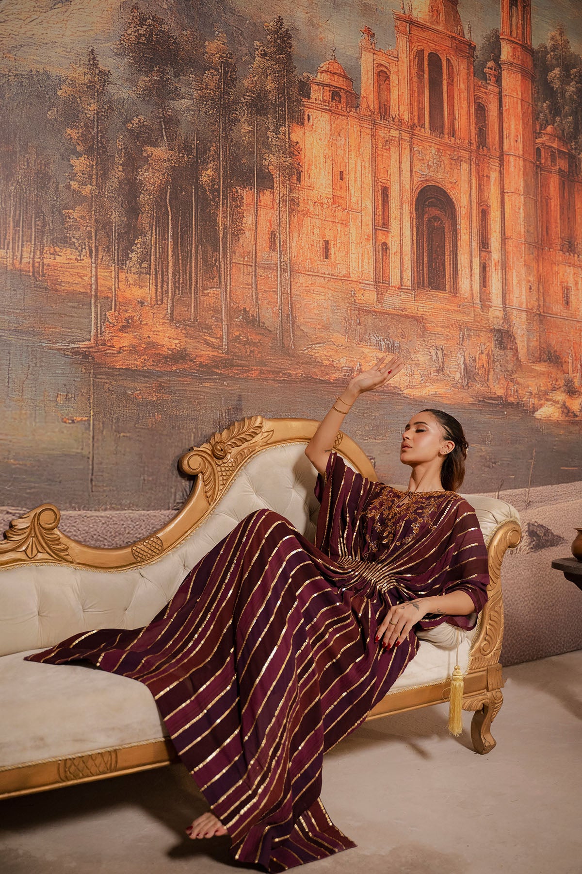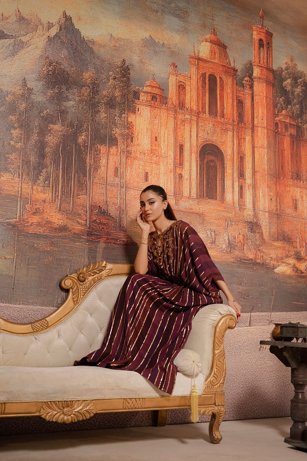 Lia - Festive Formal - Vol 3: The Ensemble Features A Digital Printed Kaftan Exquisitely Adorned With Zardoze And Sequins Embroidery All Over. Pearl And Bead Finishings. Paired With Bamboo Raw Silk Straight Pants And Under Shirt. Exudes An Air Of Effortless Elegance, Making It The Perfect Choice For Any Occasion.