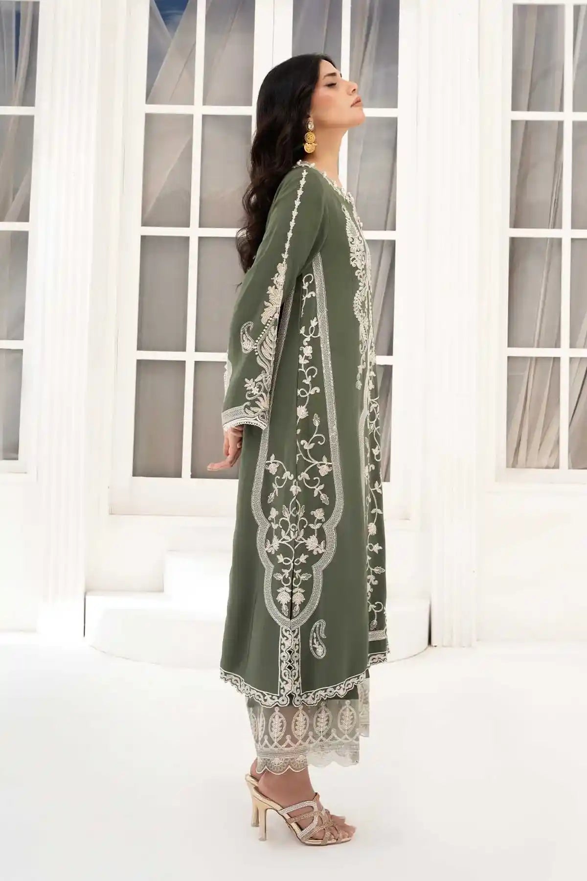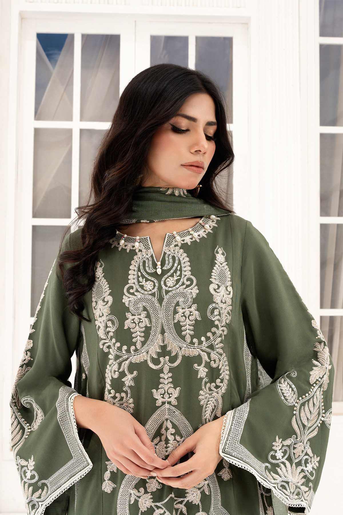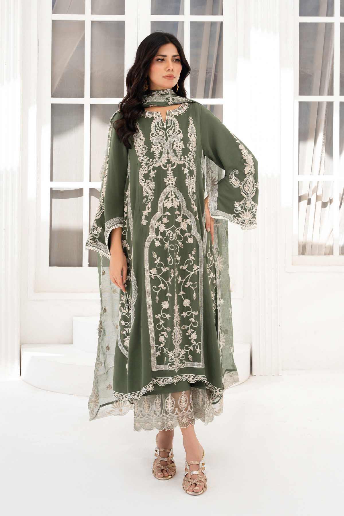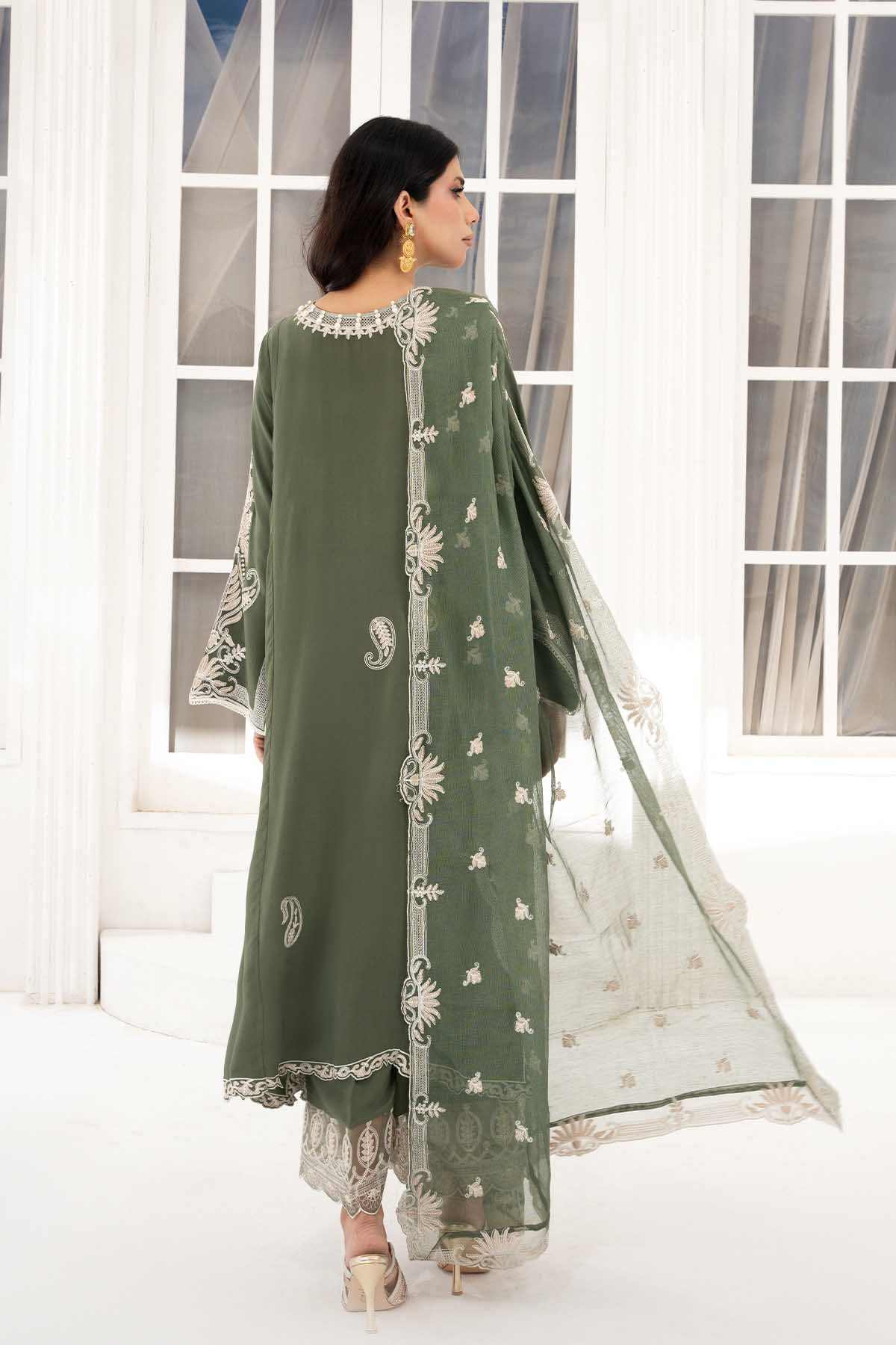 Flora & Fauna Eid Festive A Sage Green Crepe Georgette Long A Line Shirt With Round Neck Features Detailed Ivory Thread And Sequins Embroidery.Slit Sleeves With Lace Finishing.Pearls And Beads Finishing On The Neckline.Sage Green Crepe Georgette Culotte Embellished With Embroidered Organza On The Edges.Paired With Sage Green Cotton Net Dupatta Adorned With Thread And Sequins Embroidery.