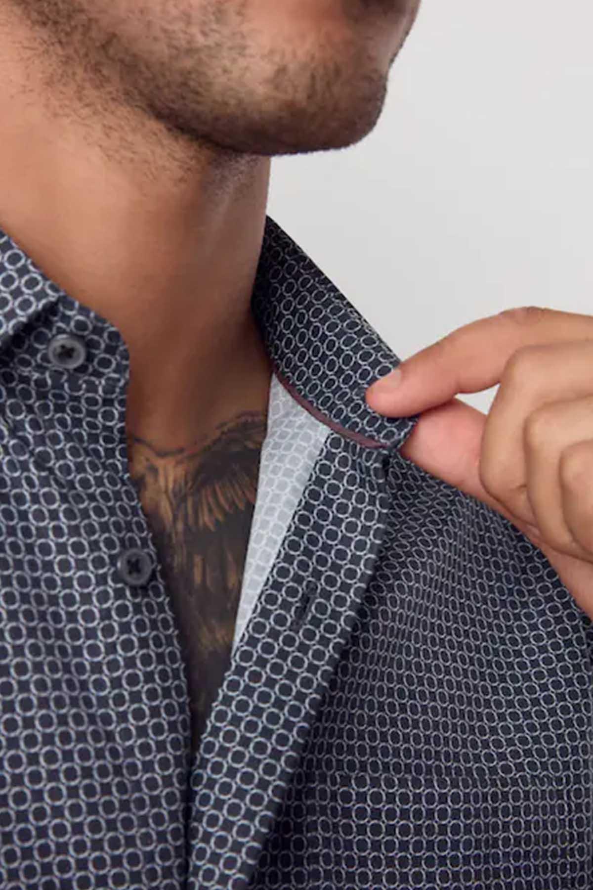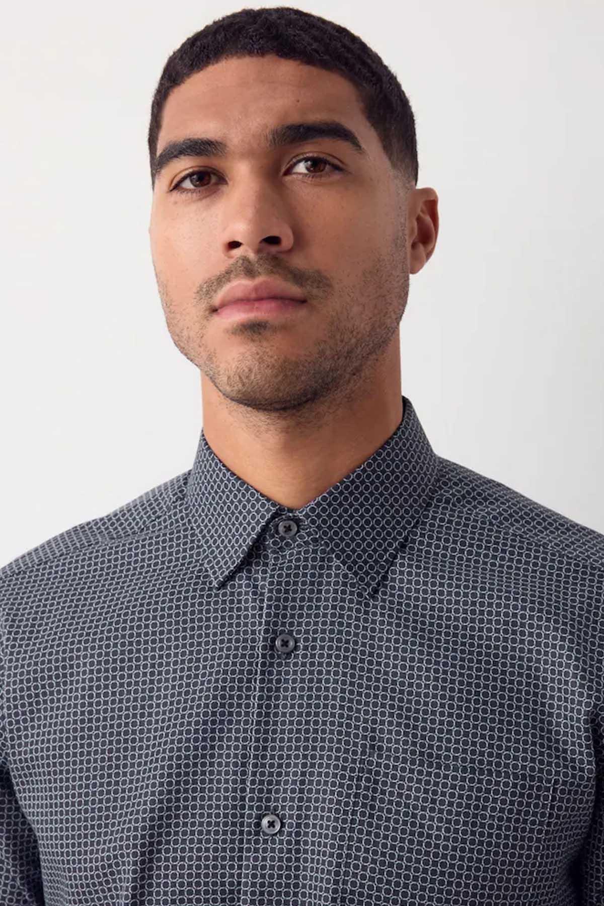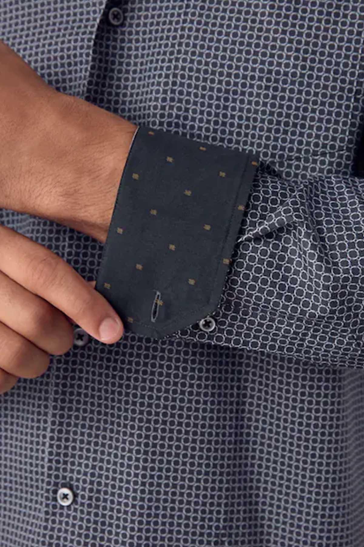 Black/Gold Link Regular Fit Long Sleeve Print Shirt