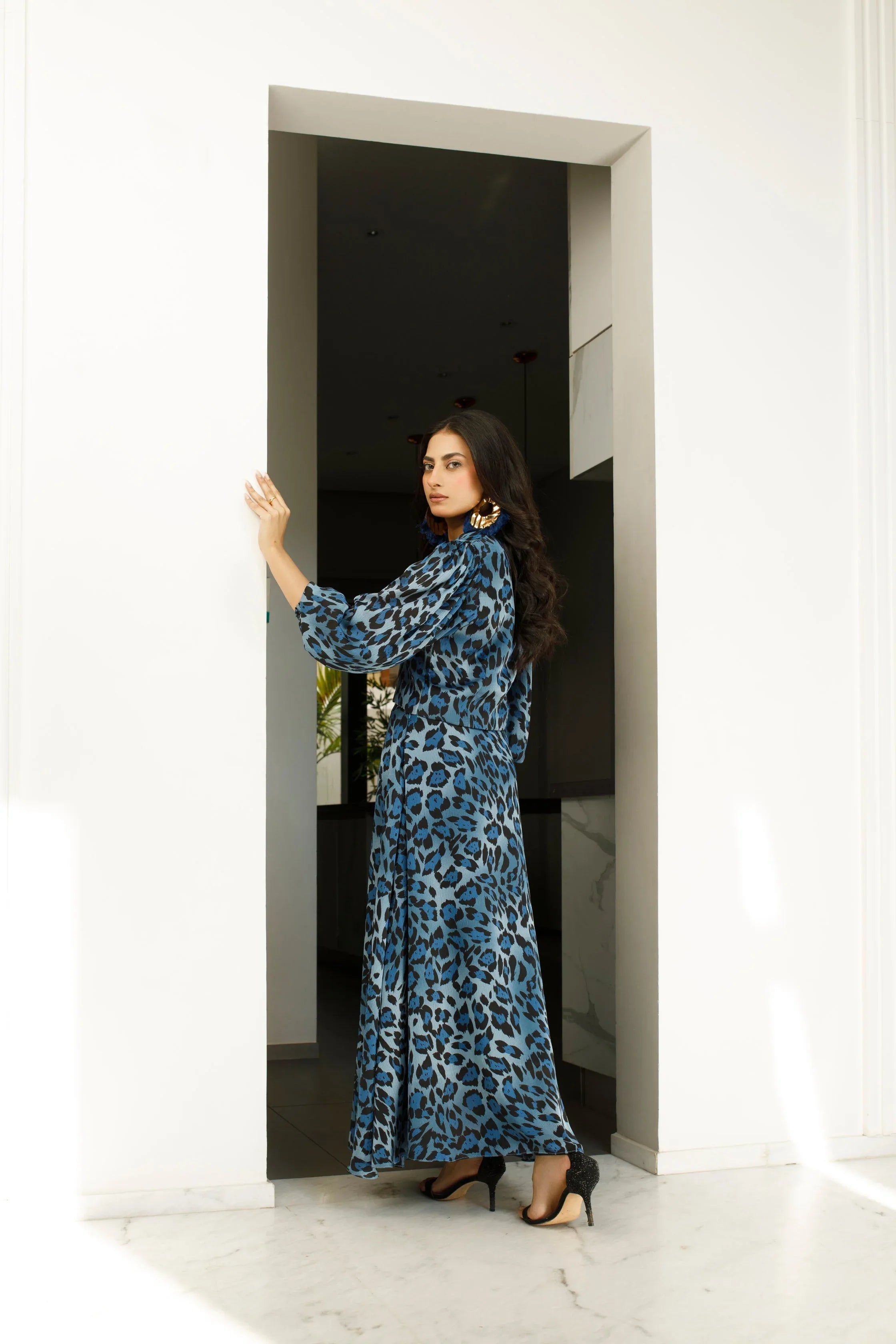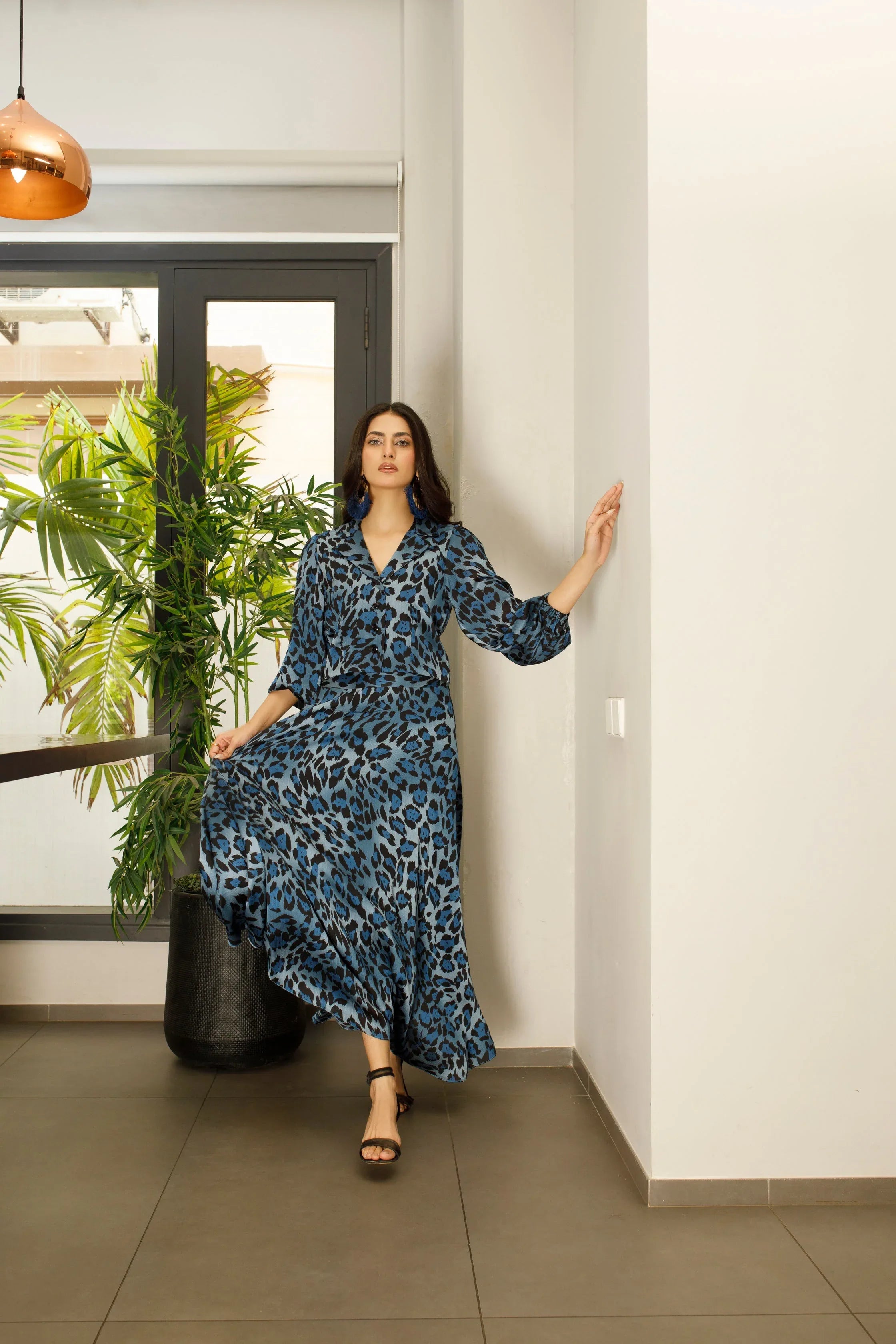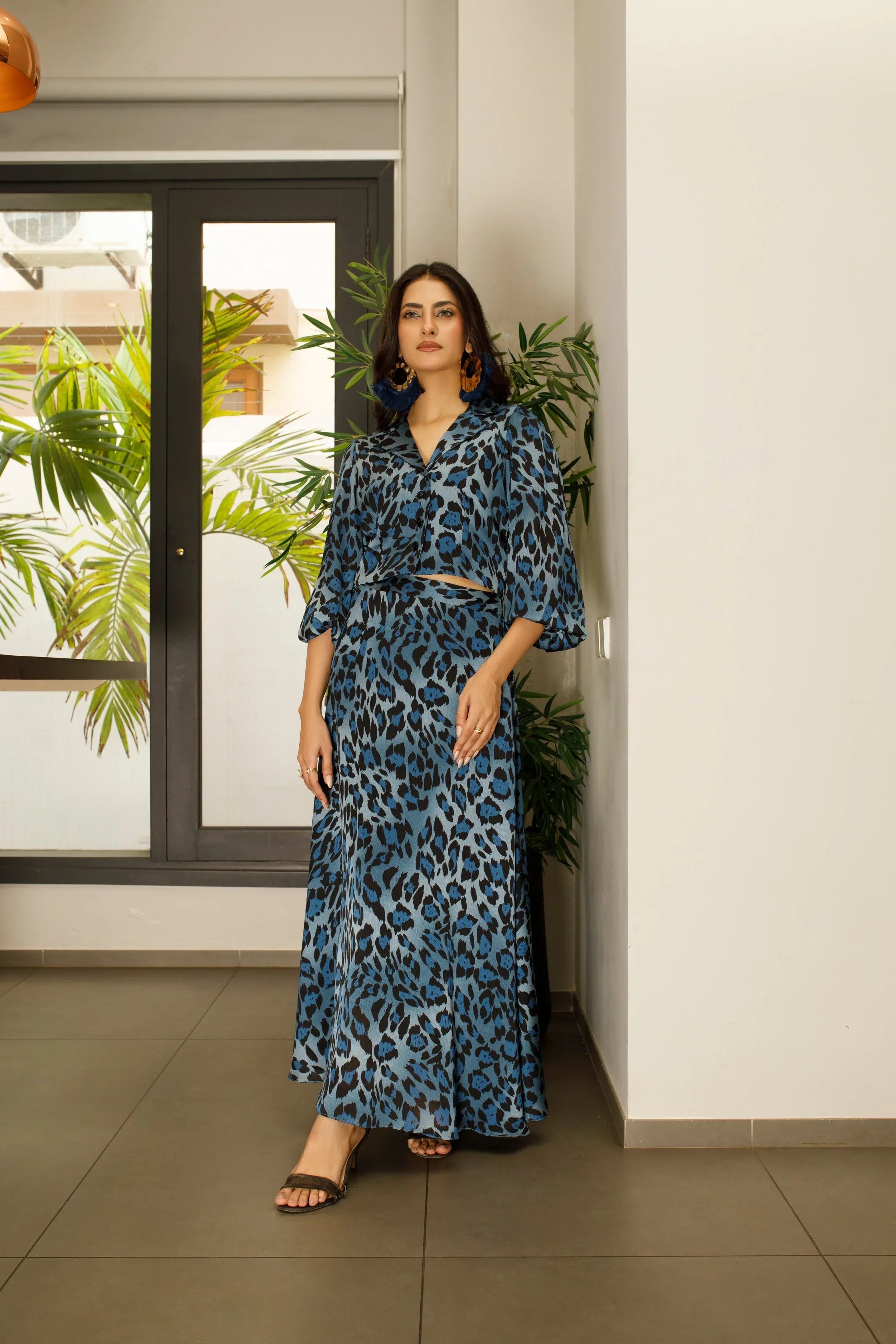 Add a touch of wild elegance to your wardrobe with our Animal Print Silk Skirt and Cropped Blazer set. This statement-making ensemble combines the luxurious feel of silk with a bold animal print pattern, The cropped blazer adds a tailored, modern twist, making this outfit ideal for both day and night looks.