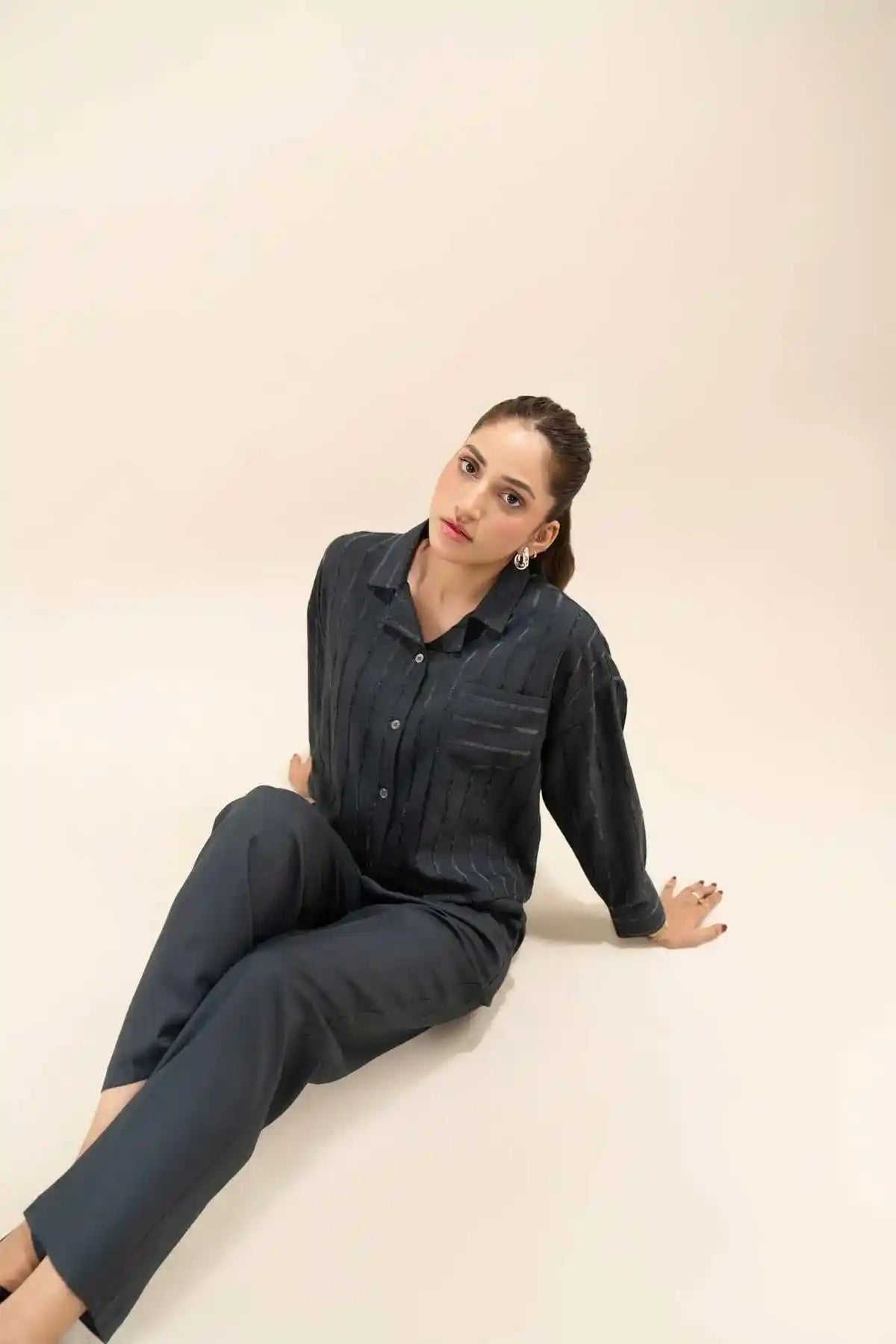 Crepe co-ord sets with a relaxed fit and dropped shoulders. Soft fabric and stylish design. Perfect for effortless, chic ensembles.