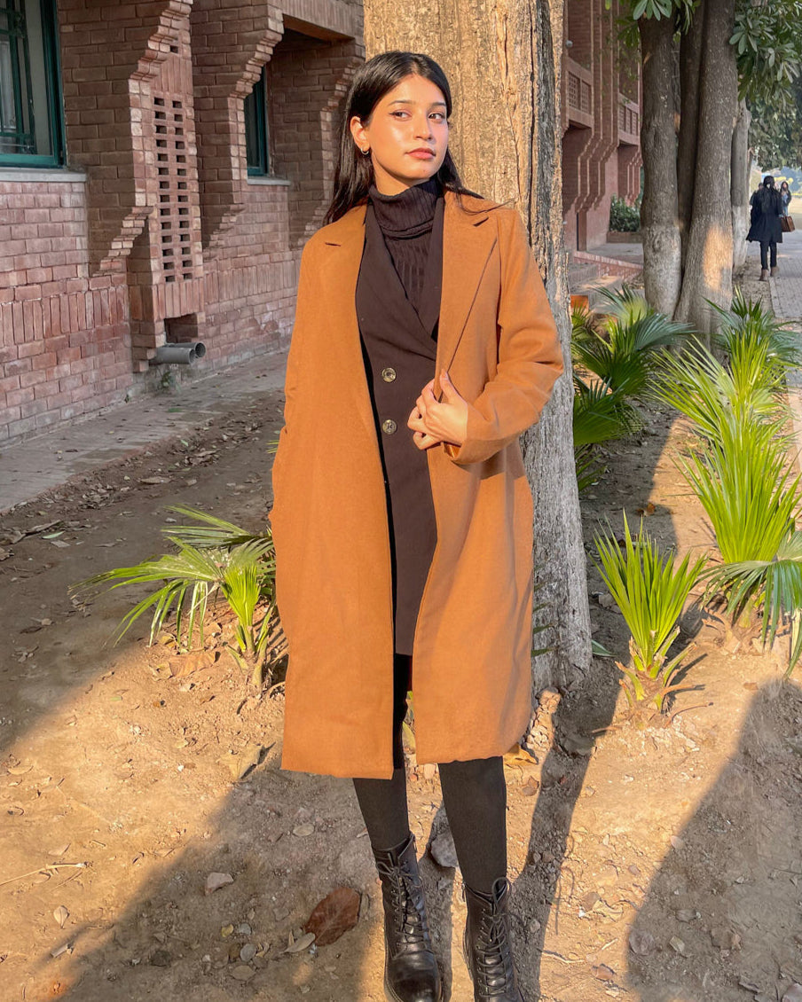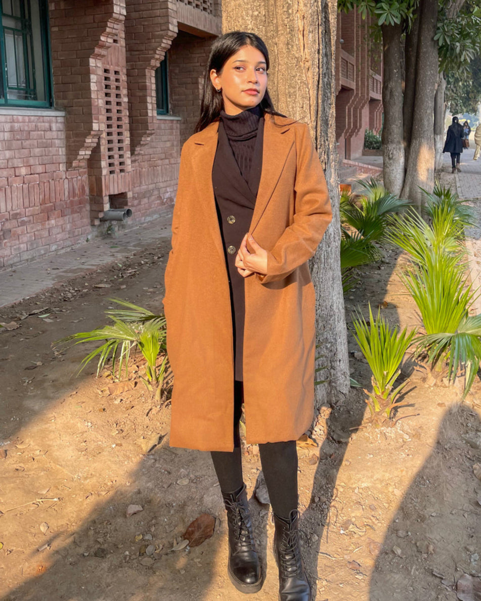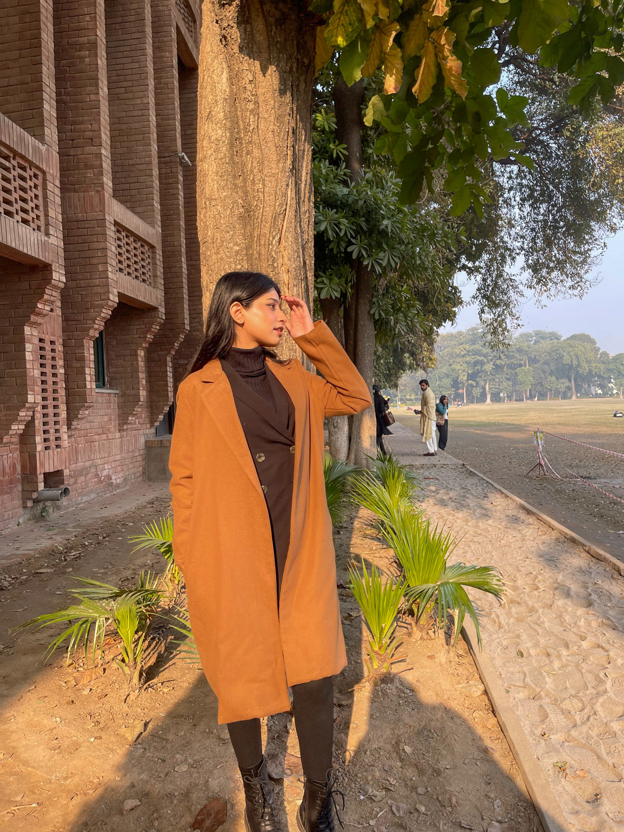 Camel Long Wool Coat For Women, Tailored To Perfection With Premium Wool For Exceptional Warmth And Elegance. This Versatile Coat Is Perfect For Formal Outings Or Casual Winter Ensembles.