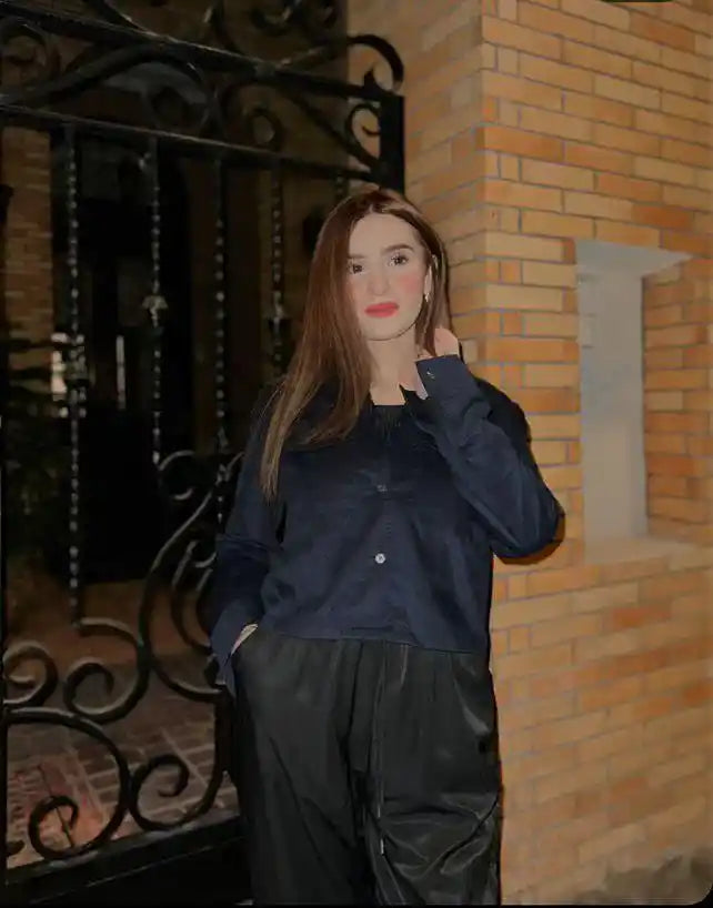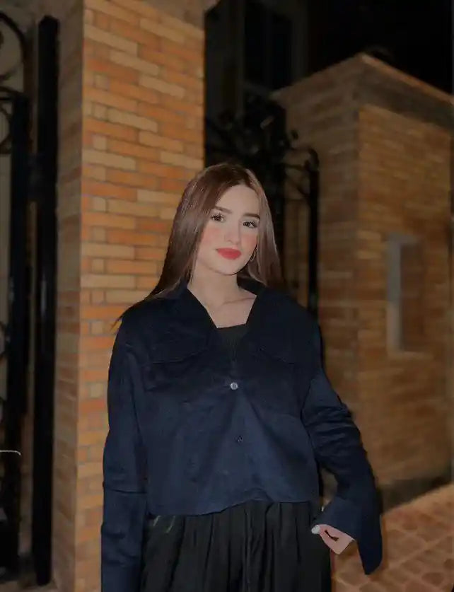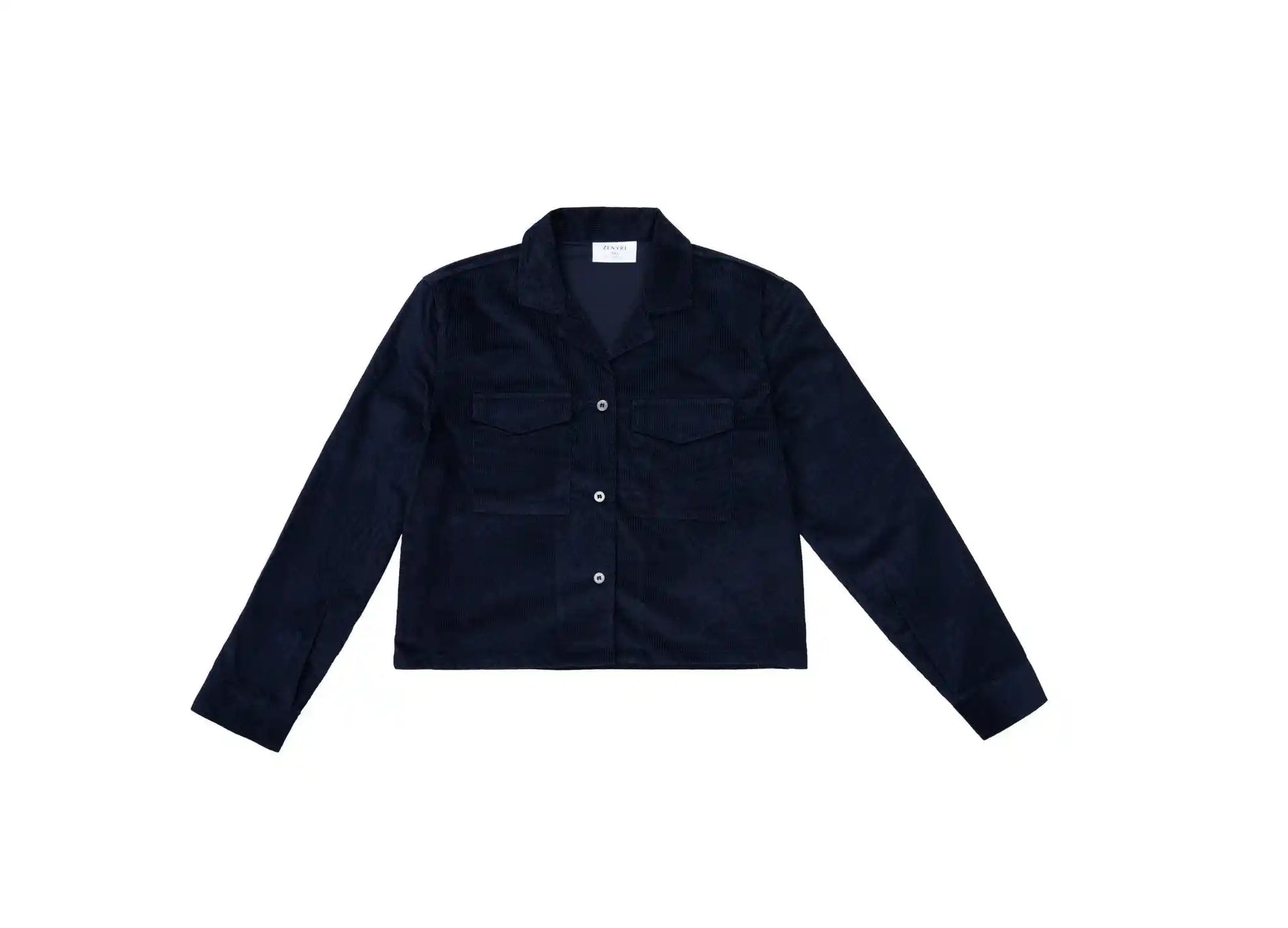 Navy Blue Corduroy Revere Cropped Shirt