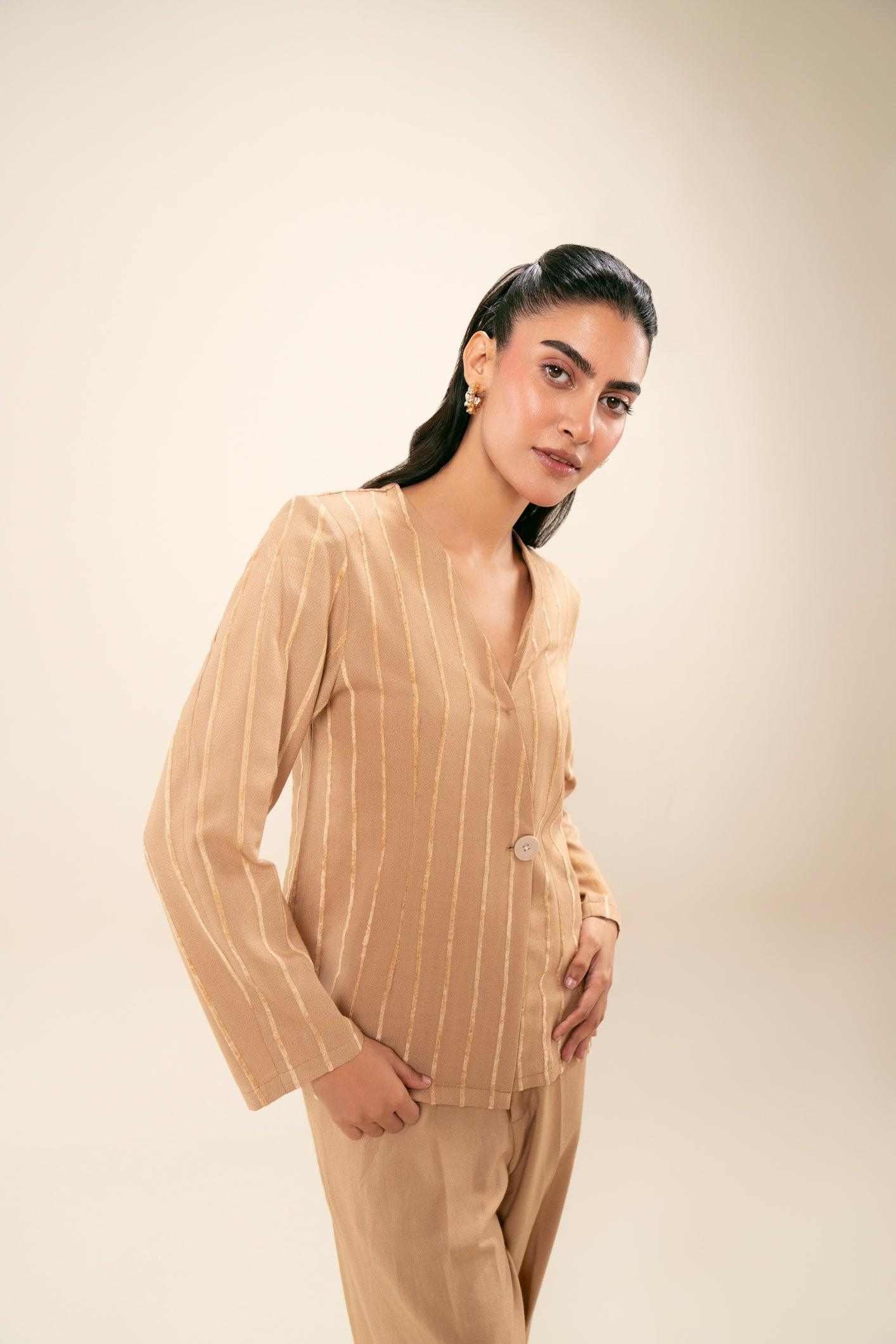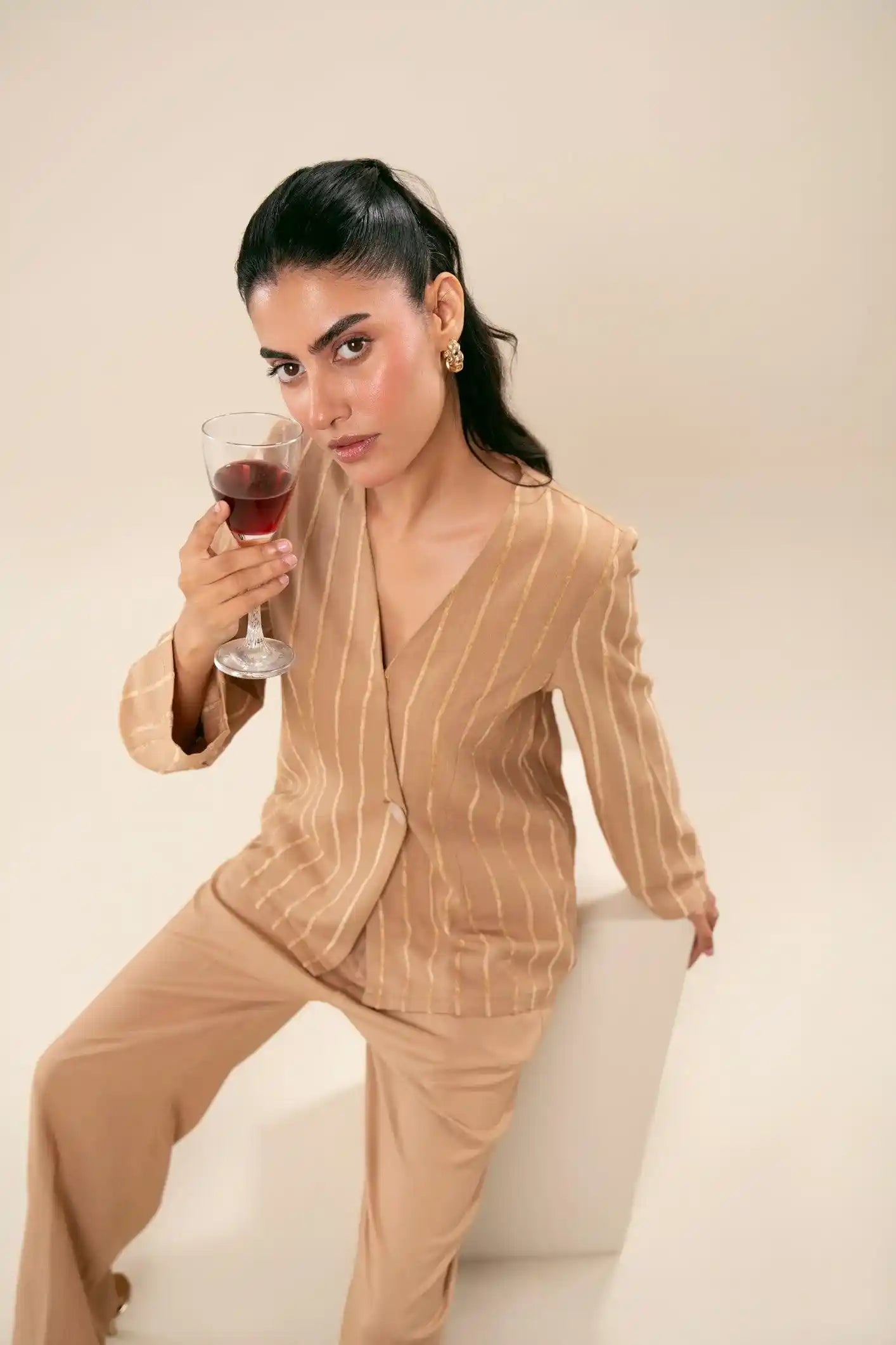 Jacket fit co-ord set with a tailored silhouette. Stylish design and comfortable fabric. Perfect for a chic, coordinated outfit.