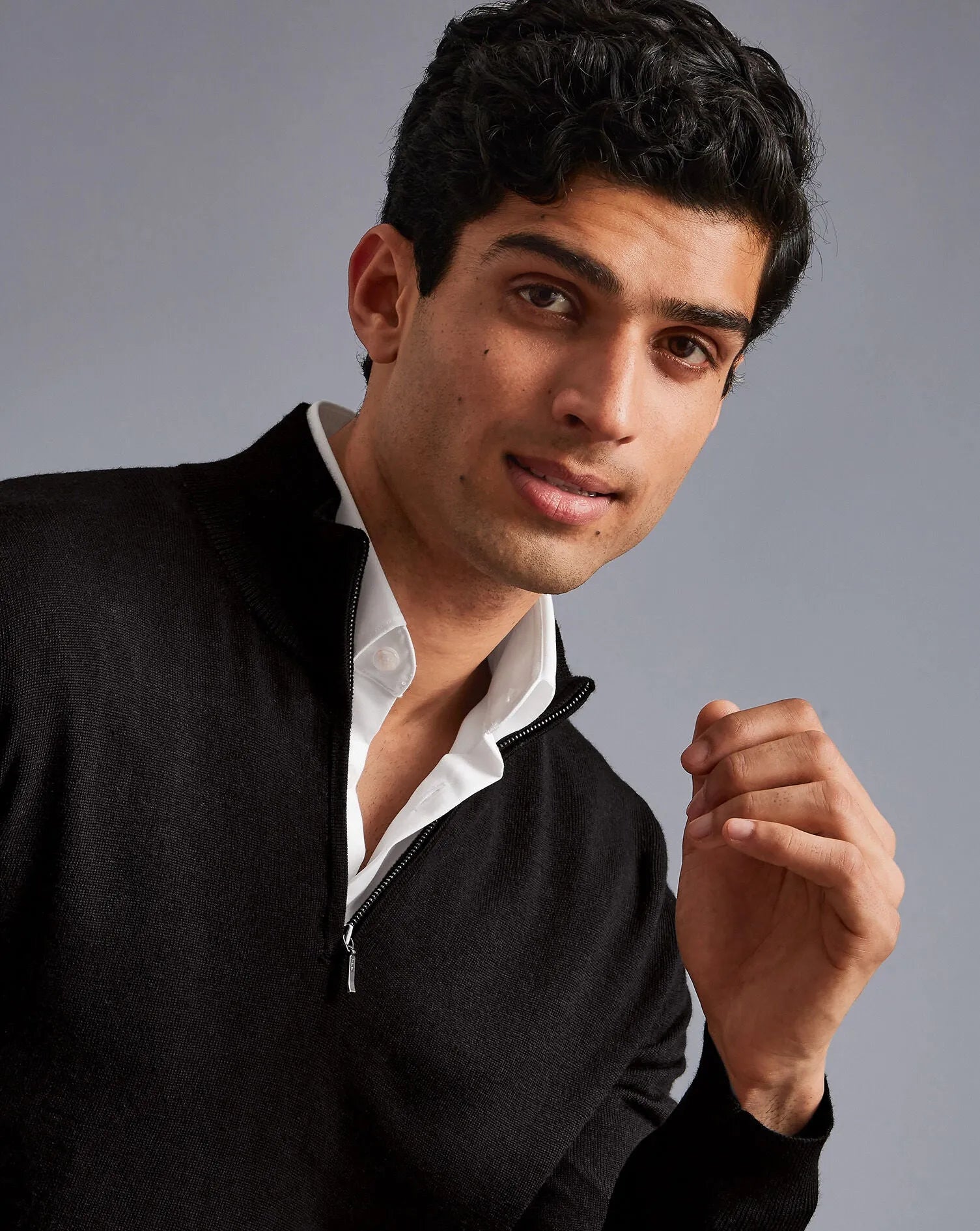 Black Pure Merino Zip Neck Jumper