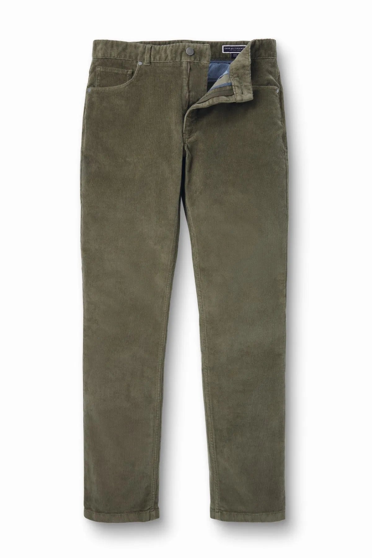Olive Green Slim Fit 5 Pocket Cord Jeans