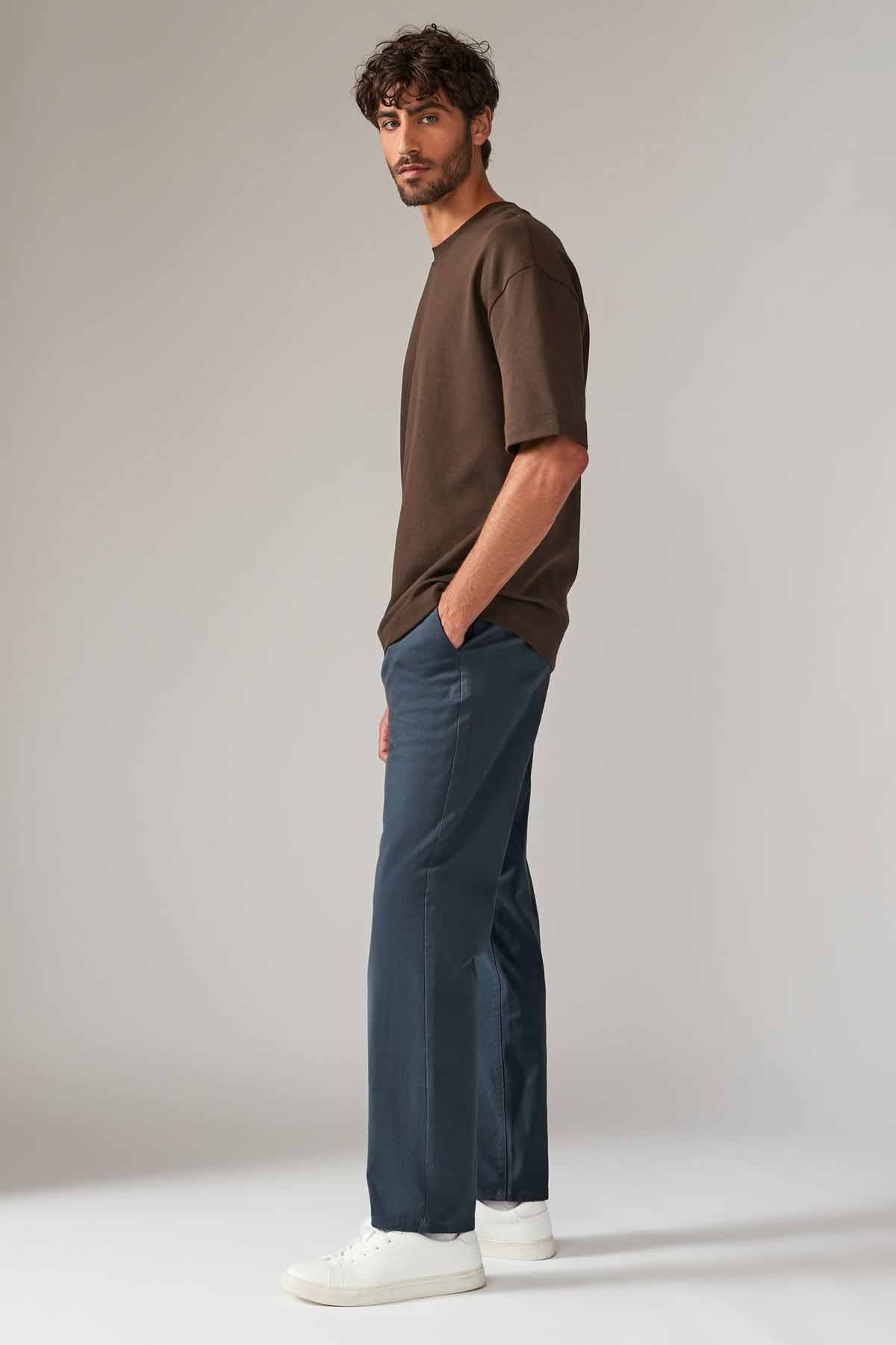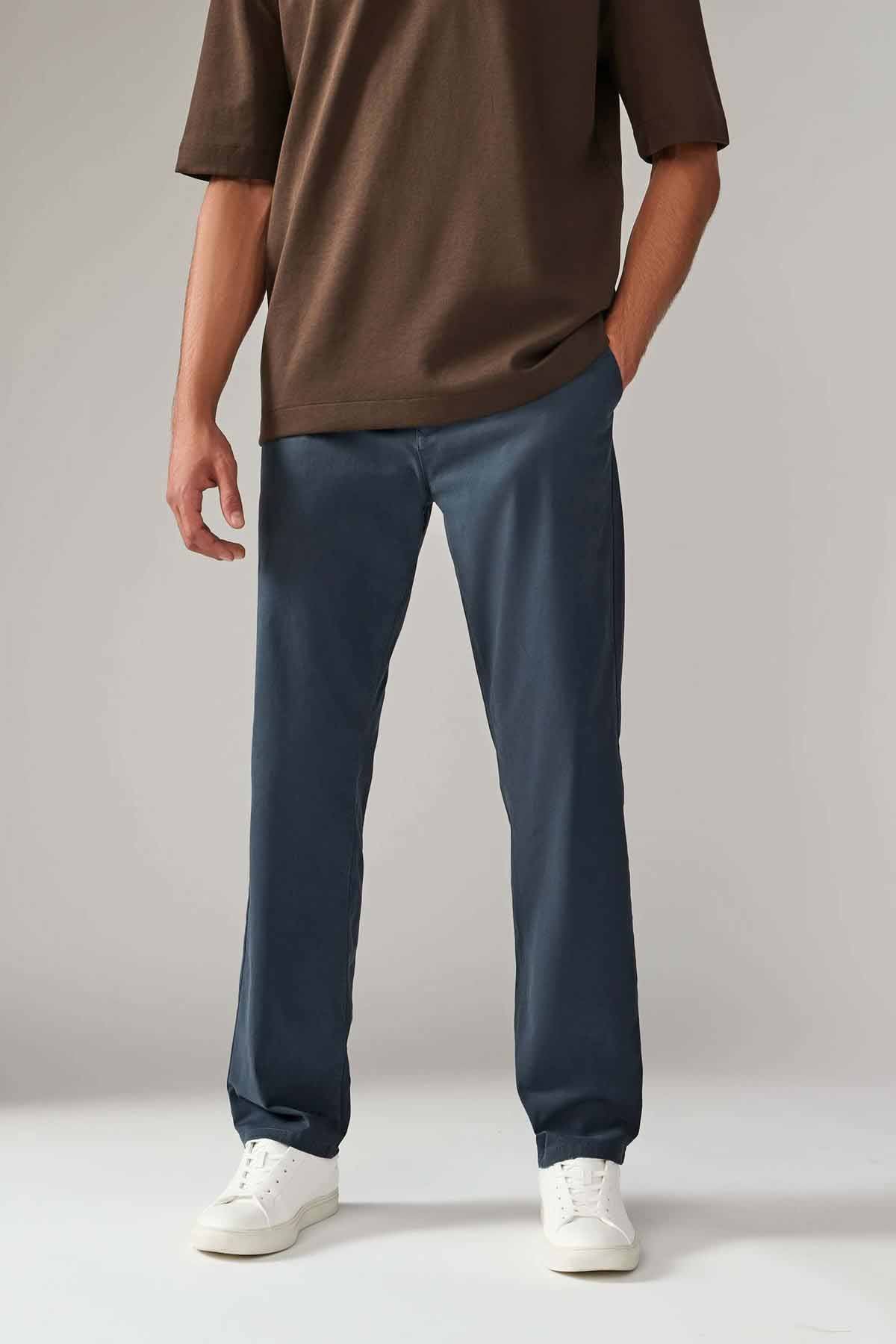 Blue Grey Mid Straight Fit Stretch Chinos Trousers