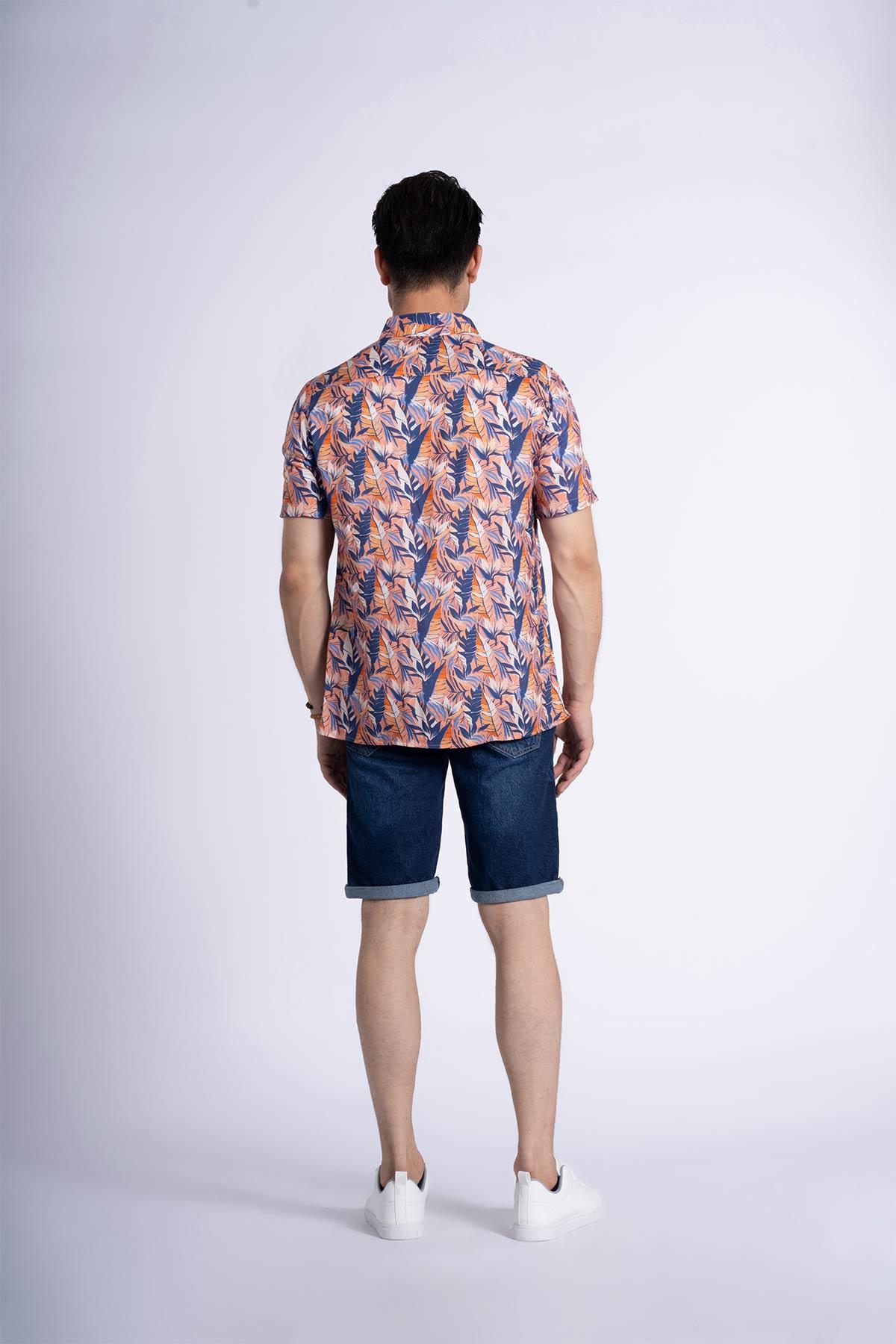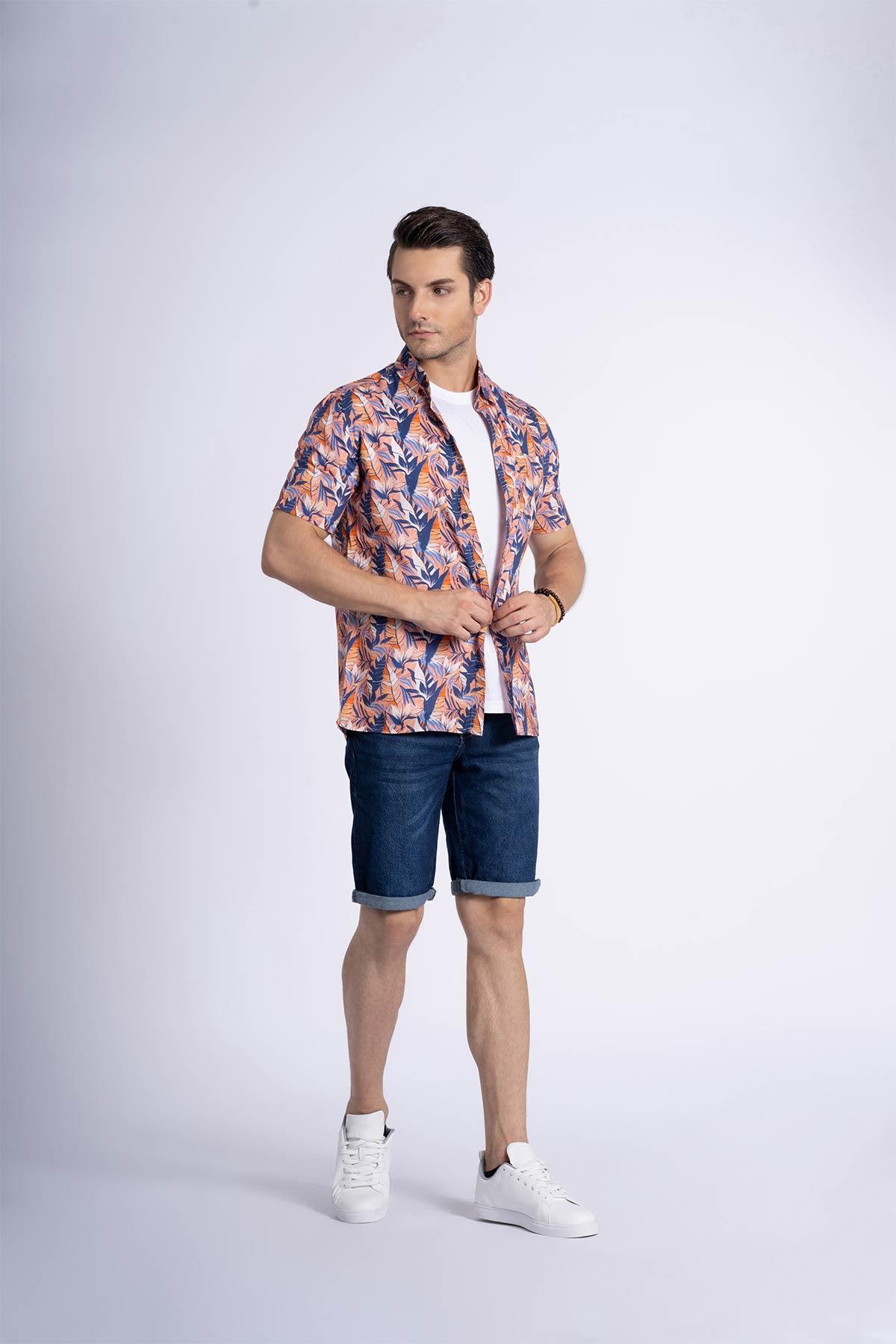 100% Viscose. Casual Printed Button Down Shirt Featuring Short Sleeves