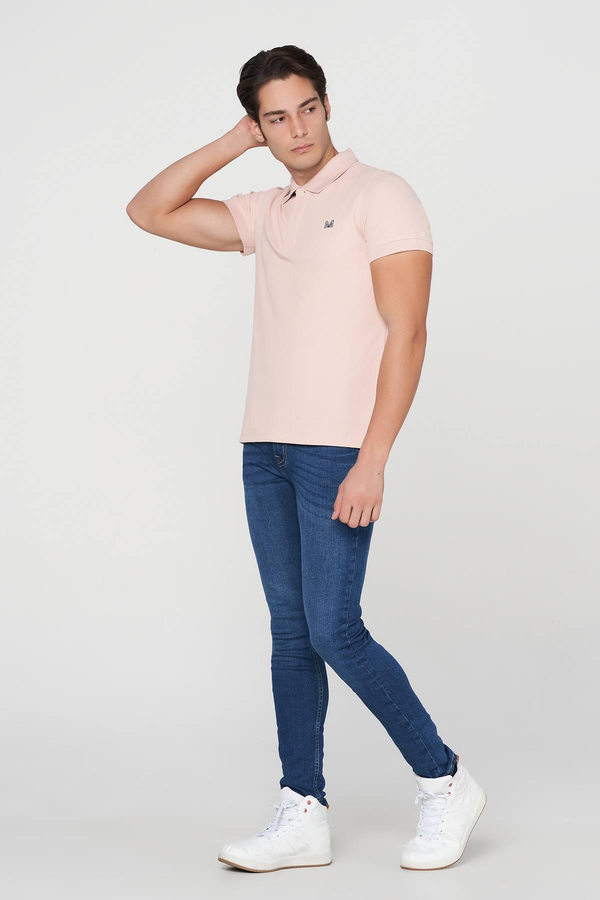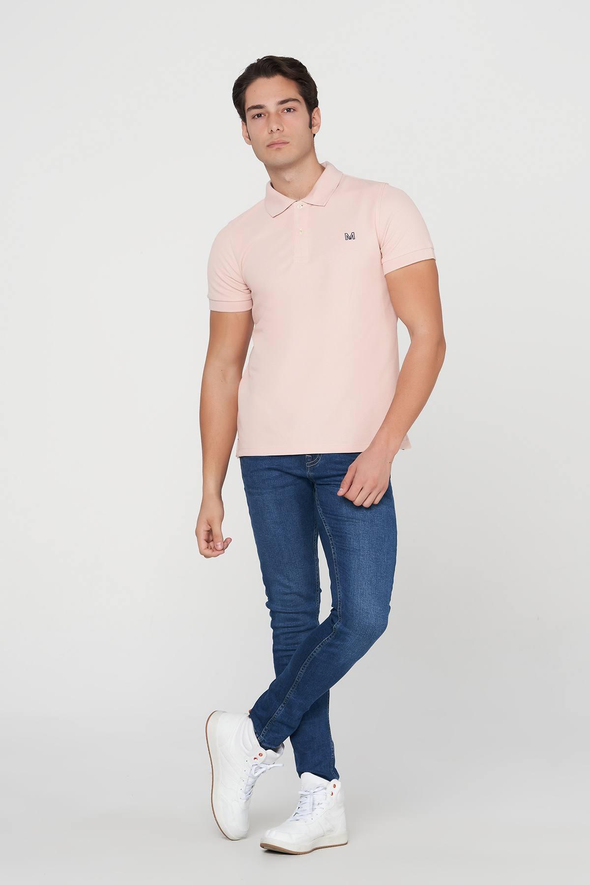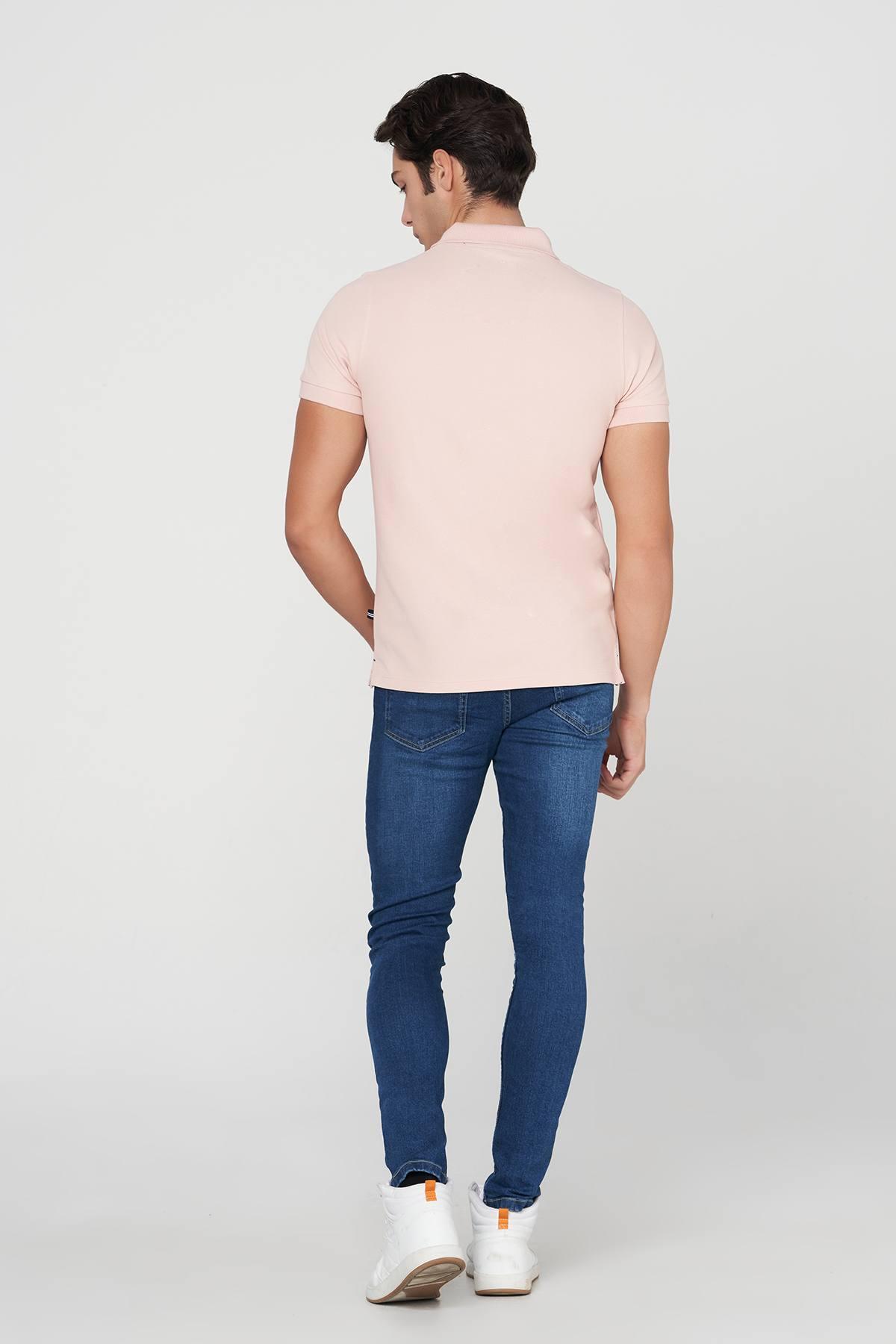 60% Cotton & 40% Polyester. Casual Stretchable Solid Regular Button Up Collar Slim Fit Polo Shirt Featuring Chest Typography With Short Sleeves. Ribbed Collar And Sleeve Hem