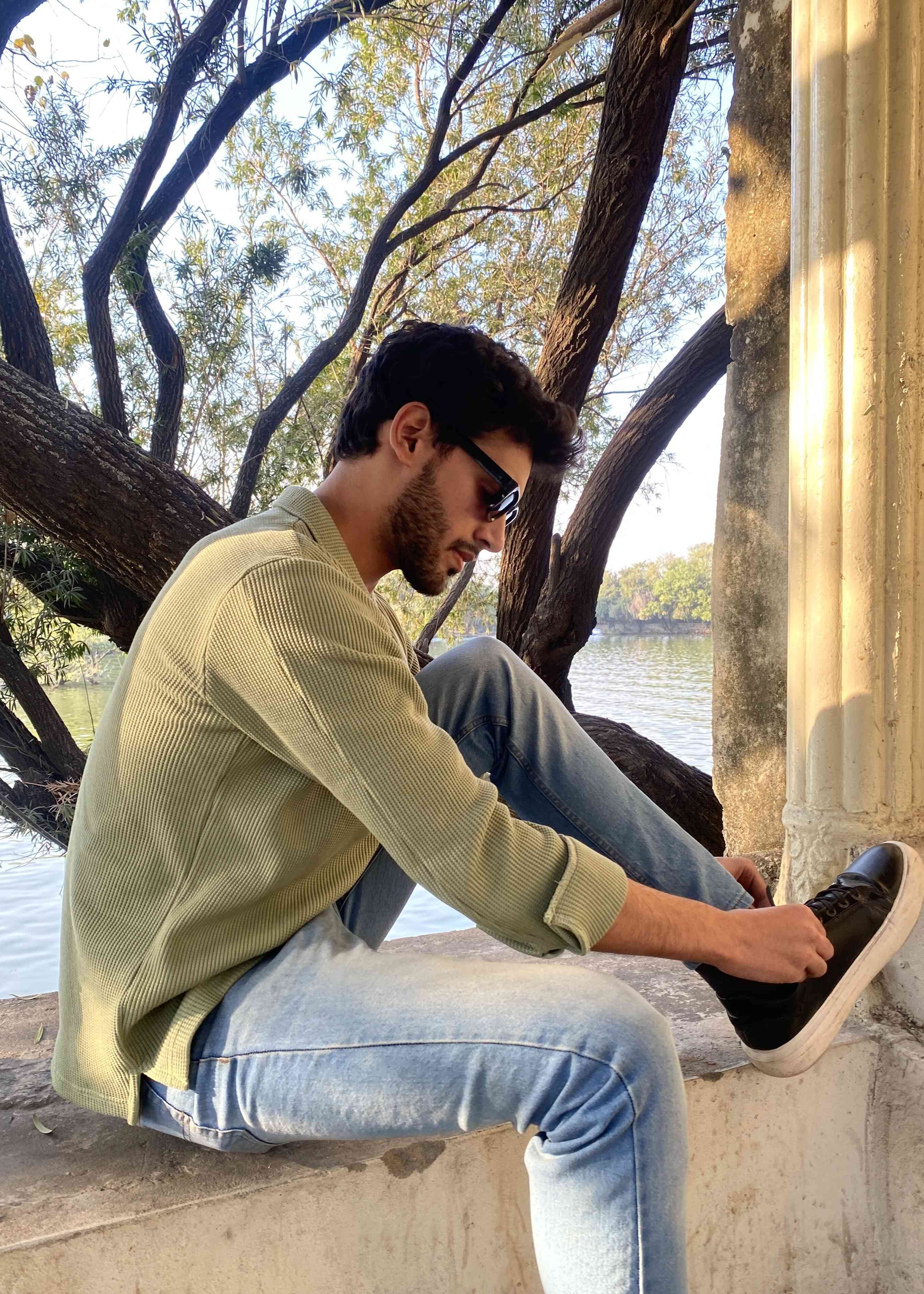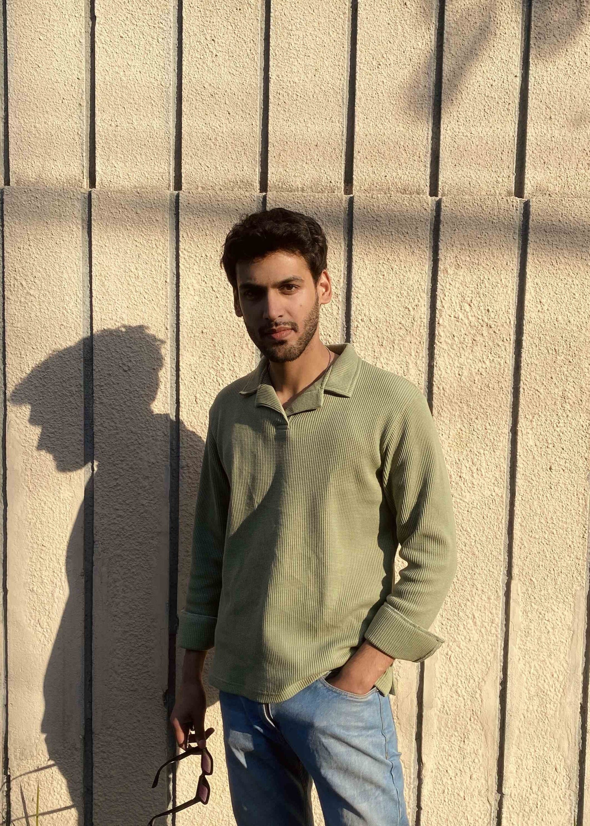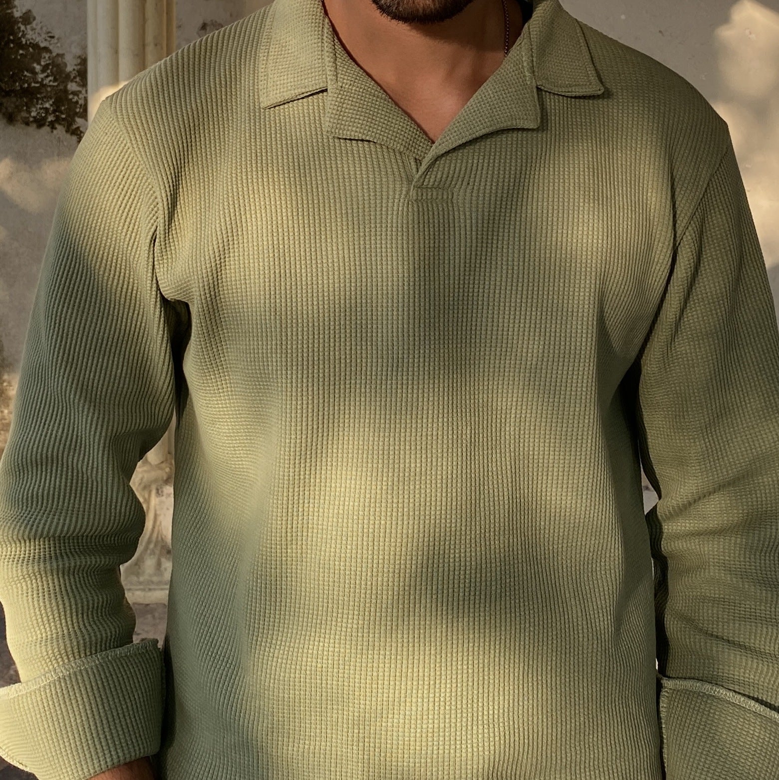 Mint Waffle Textured Revere Polo - Full Sleeves