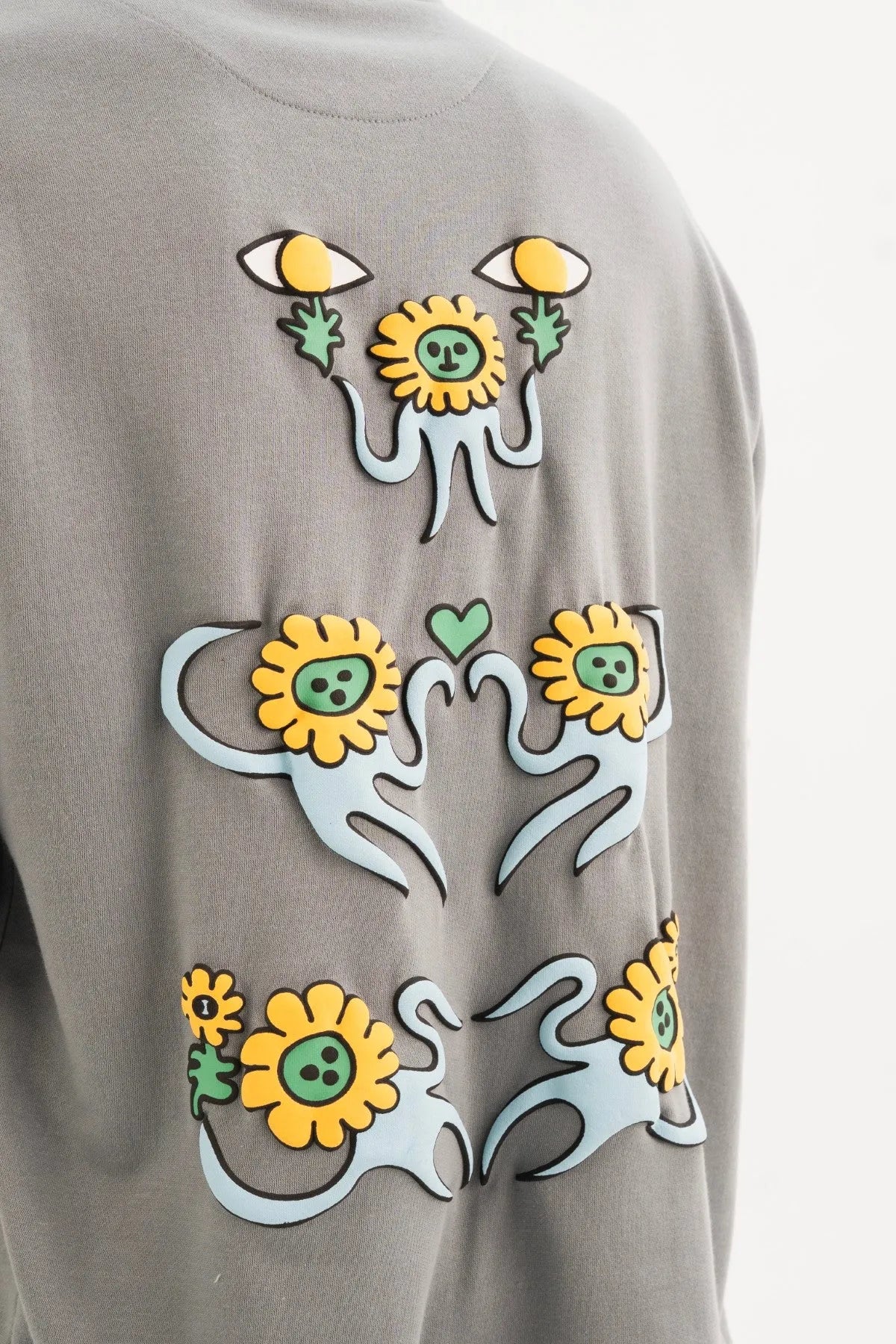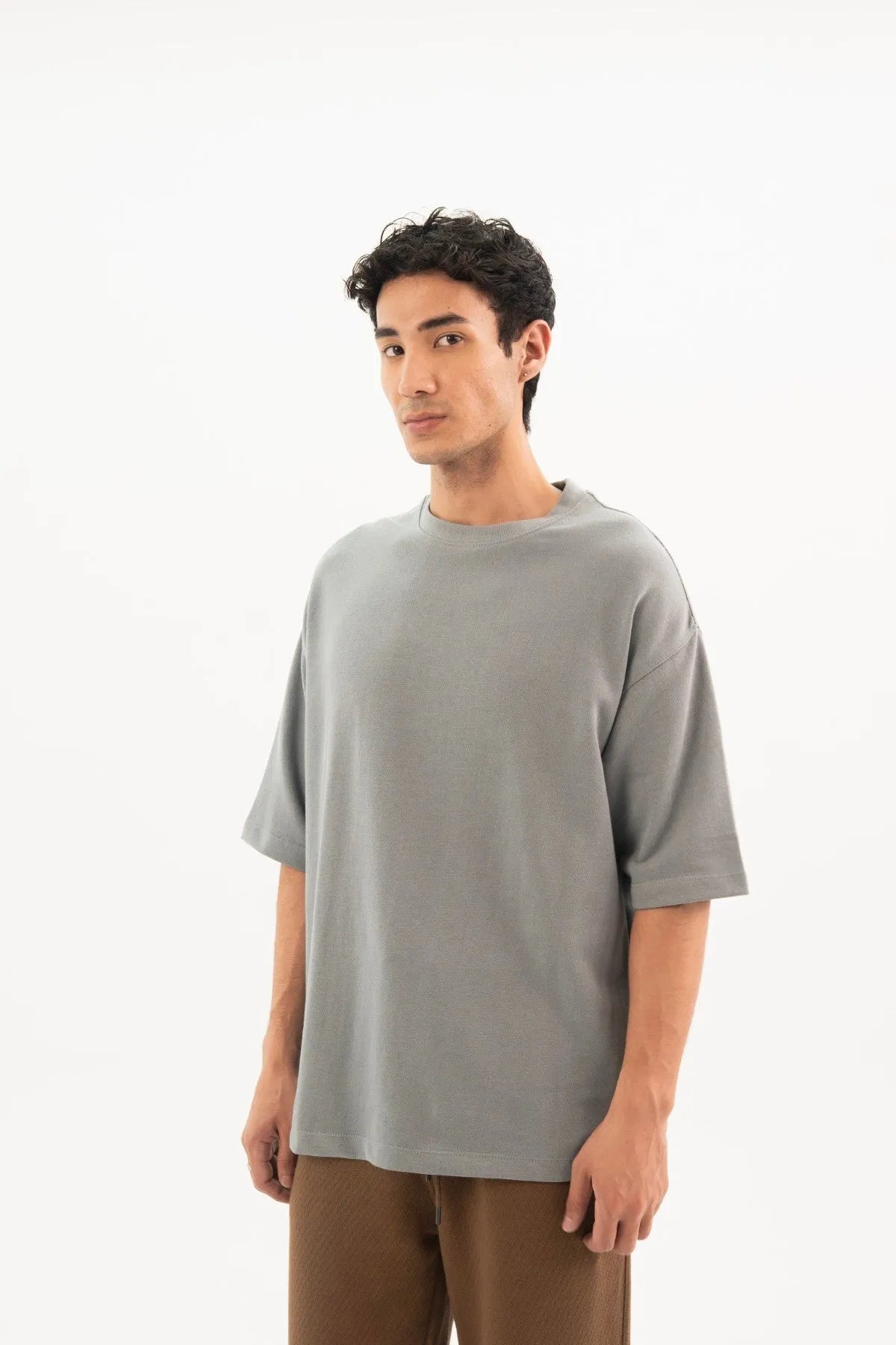This T-shirt is made from structured pique fabric, which is known for its textured look and durable, breathable feel. It features a comfortable relaxed fit and classic half sleeves. The back of the tee holds the main design, which is created using puff printing to give the graphic a raised, three-dimensional texture. In a versatile grey color, this T-shirt merges reliable comfort with a cool design feature on the reverse side.