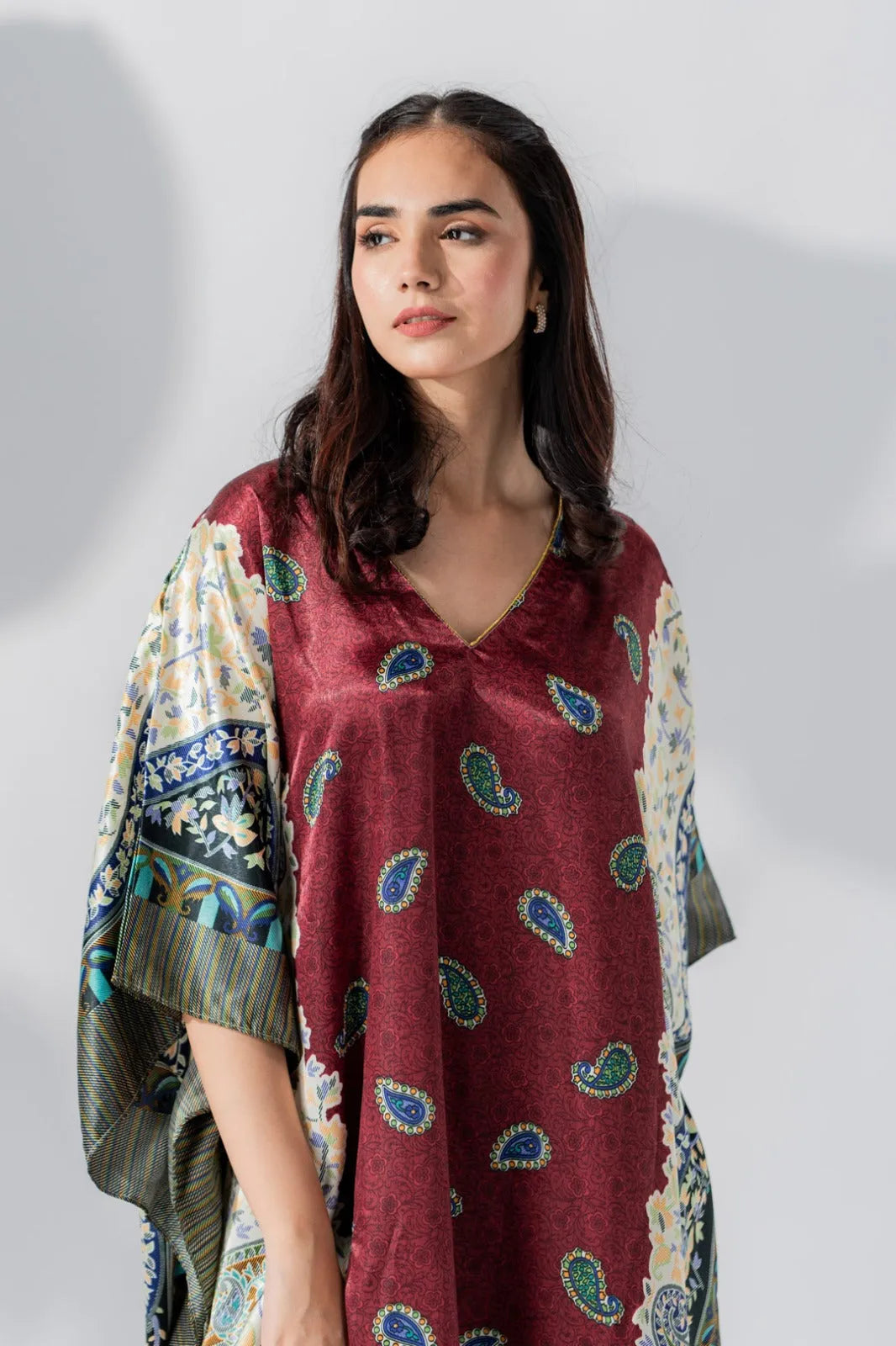 Studio By Arj women Brown print Silky Satin caftan lounge wear / nightwear