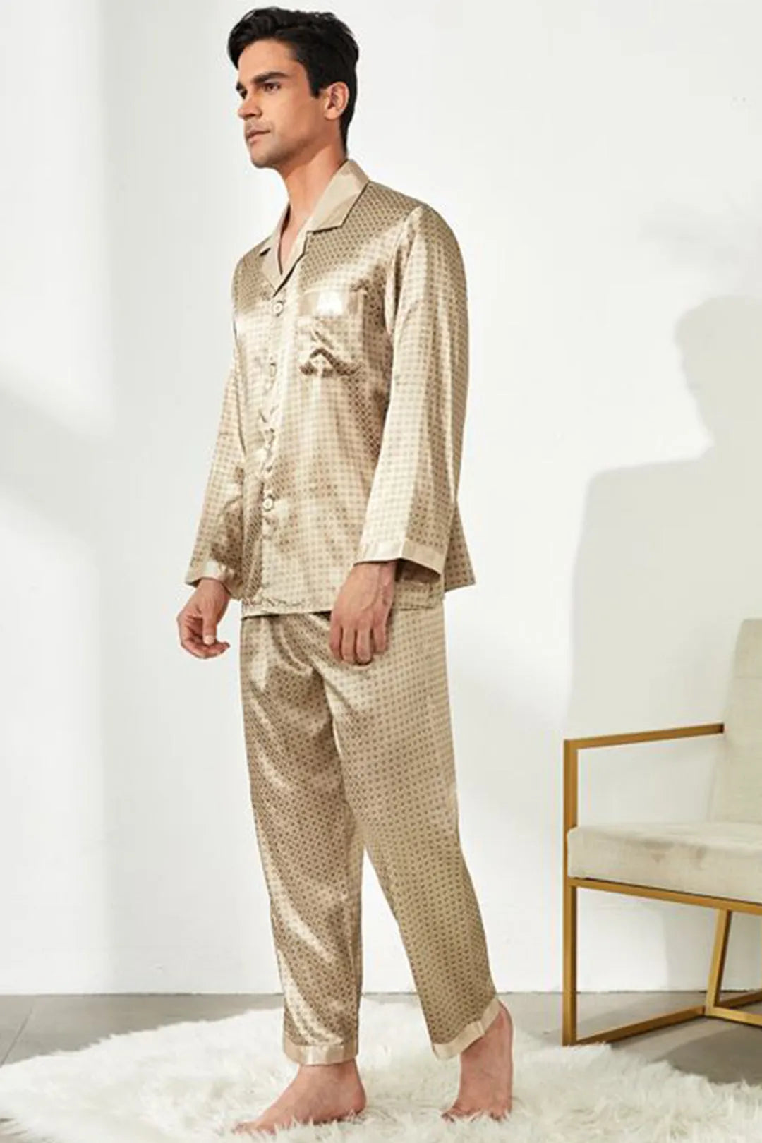 Our Men's Satin Full-Sleeve Pajama Set is nicely tailored with a classic cut. Made of 100% lightweight polyester fabric with a satin weave and silky feel, these men's pajamas feature one front pocket on the chest, a comfortable elastic waistband
